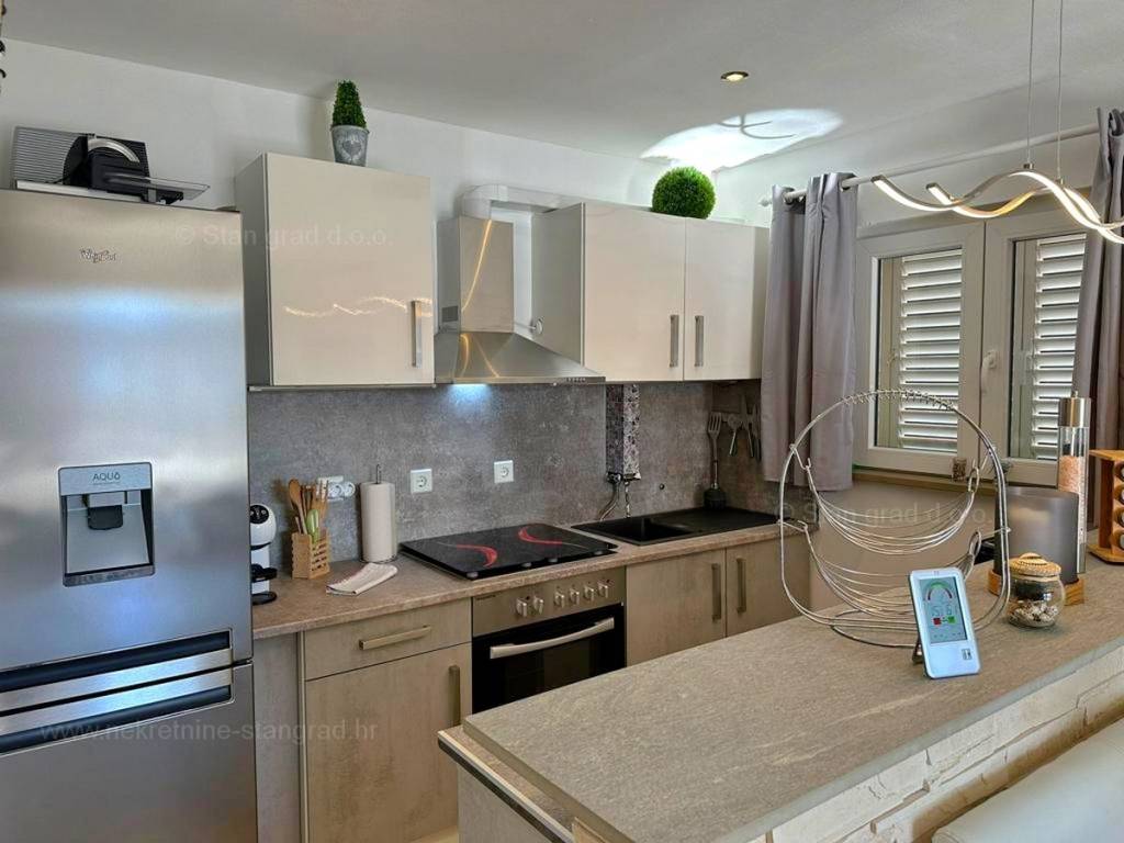 The Stan Grad Immobilien agency in Kvarner sells an interesting vacation home in the traditionally most sought-after Croatian Adriatic area, the island of Krk. This truly special property is located in a prime location in the beautiful coastal town of Uvala Soline, 50 m from the sea. It is a detached one-story house. The charming house consists of a basement and a high ground floor. The total area of this house is 110 m2. This area includes the living room and kitchen, 3 bedrooms, a bathroom and a terrace with a jacuzzi. The well-maintained interior of the property is fully furnished with quality furniture and all the necessary technical equipment. There are a smaller and a larger auxiliary building on the attached, beautifully organized garden next to the house. In the garden of this house there is enough space to park two cars. In addition to all of the above, it should be noted that the property has a beautiful open view of the sea. This house is the property of a natural person and the transfer of its ownership is subject to real estate transfer tax in the amount of 3%. The seller of the house guarantees proper ownership documentation and a quick transfer of property ownership. Contact us in person or by phone, we will try to answer all your questions. If you decide to cooperate with our agency, we will be happy to help you with administrative actions related to the registration of real estate and the transfer of utility bills to your name.
