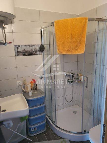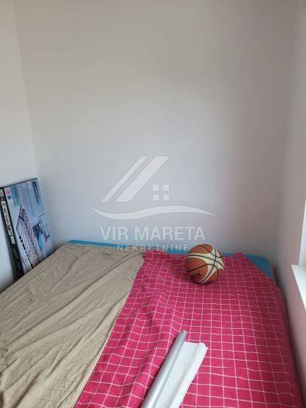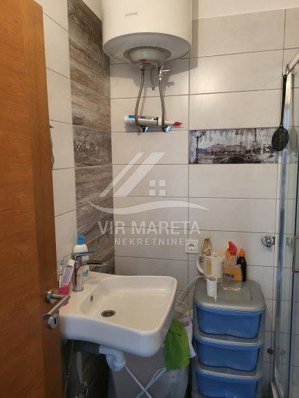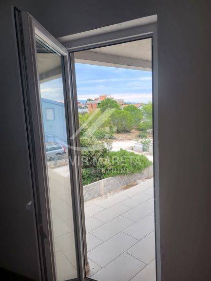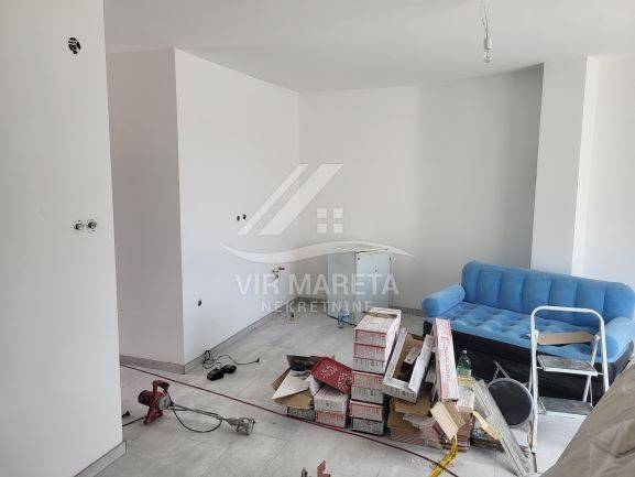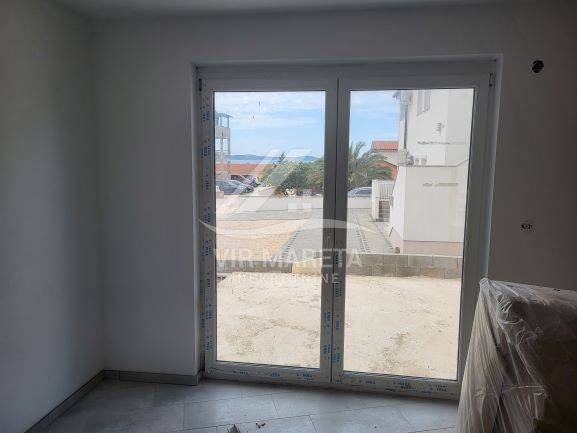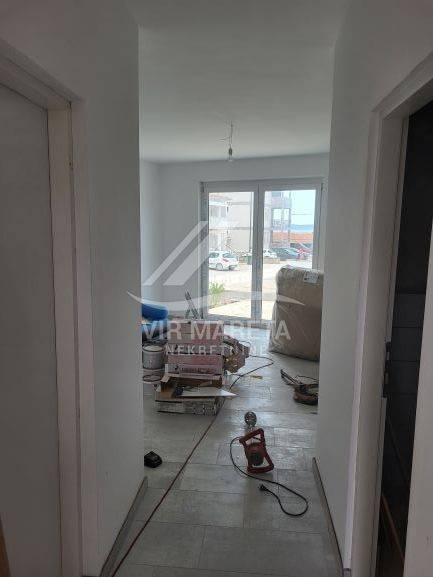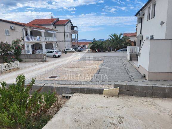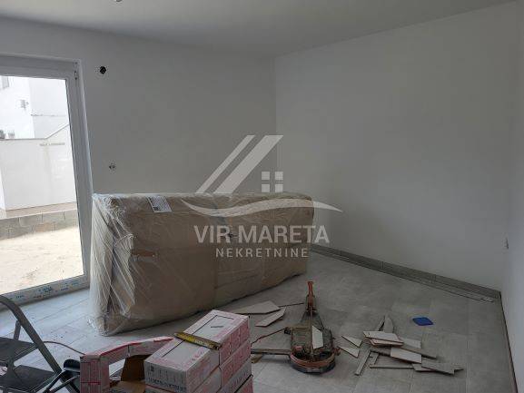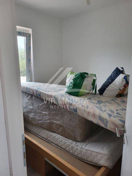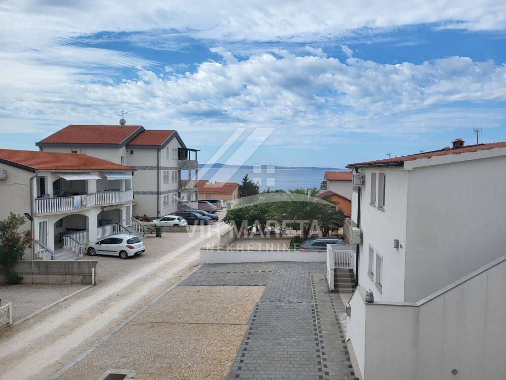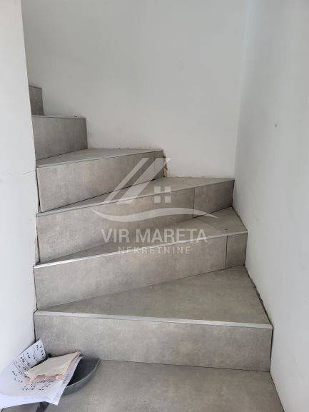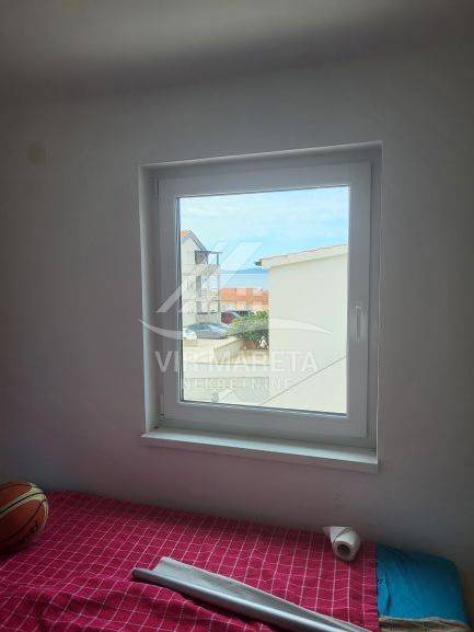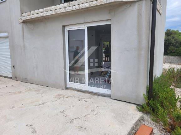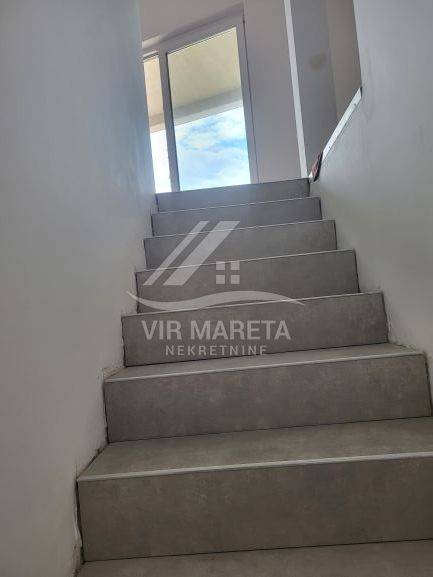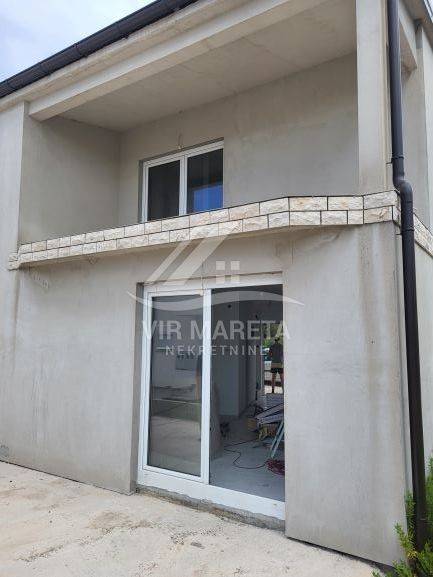 Two apartments for sale on the southern side of the island of Vir, only 220 meters from the sea. Both apartments are on two floors and consist of an entrance hall, two corridors, two bathrooms, three bedrooms, a staircase, a covered terrace, and two loggias on the first floor. There are three parking spaces next to one apartment and two parking spaces next to the other. Each apartment has a 70 m² yard. The apartments have a view of the sea. The apartments are split-level and registration in the land register is in progress. The finishing works are in progress. The price of each apartment is 229,000 euros.