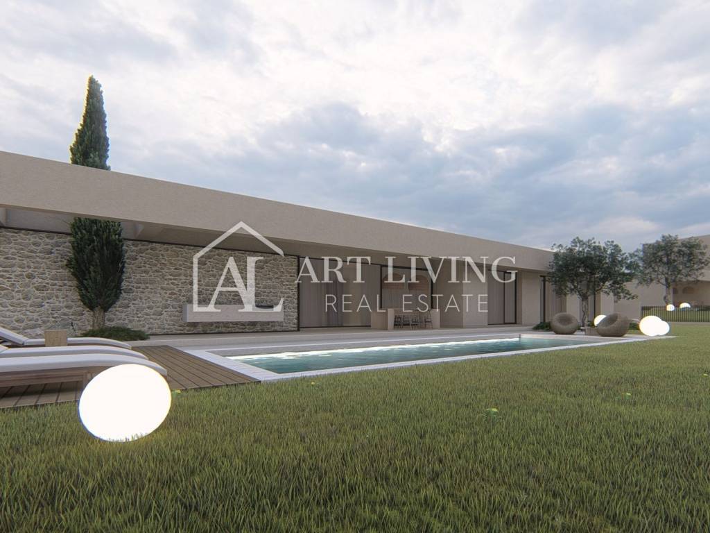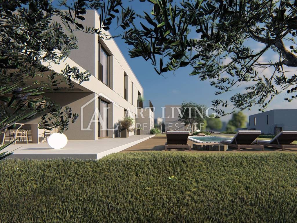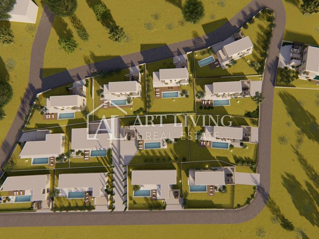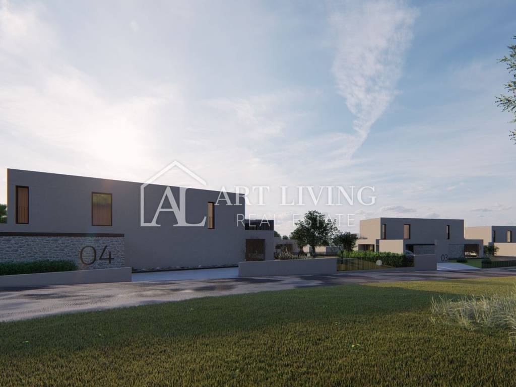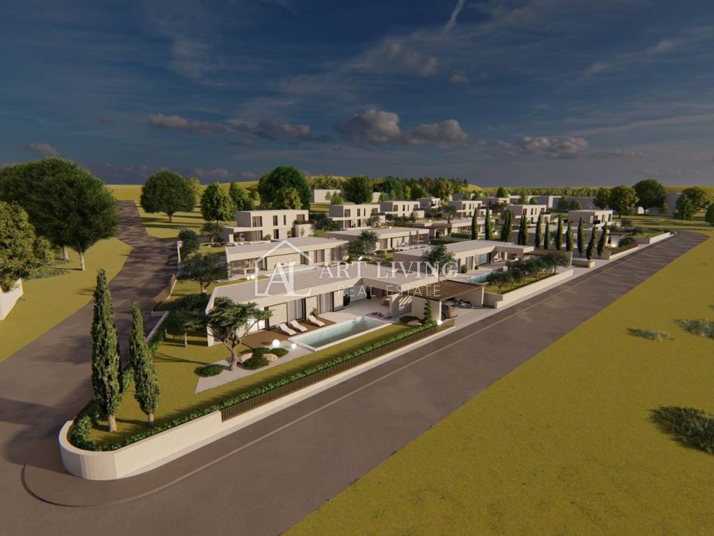 luxury villa for sale in a new residential area near Porec. This luxury resort of 14 villas designed in a modern Mediterranean architectural style fits perfectly into the environment with its architecture and gardens, overlooking the sea.