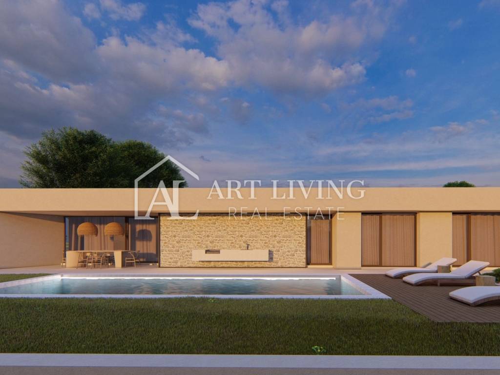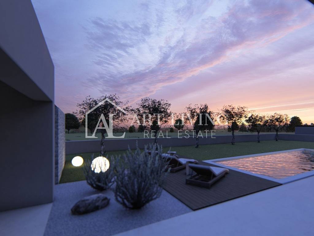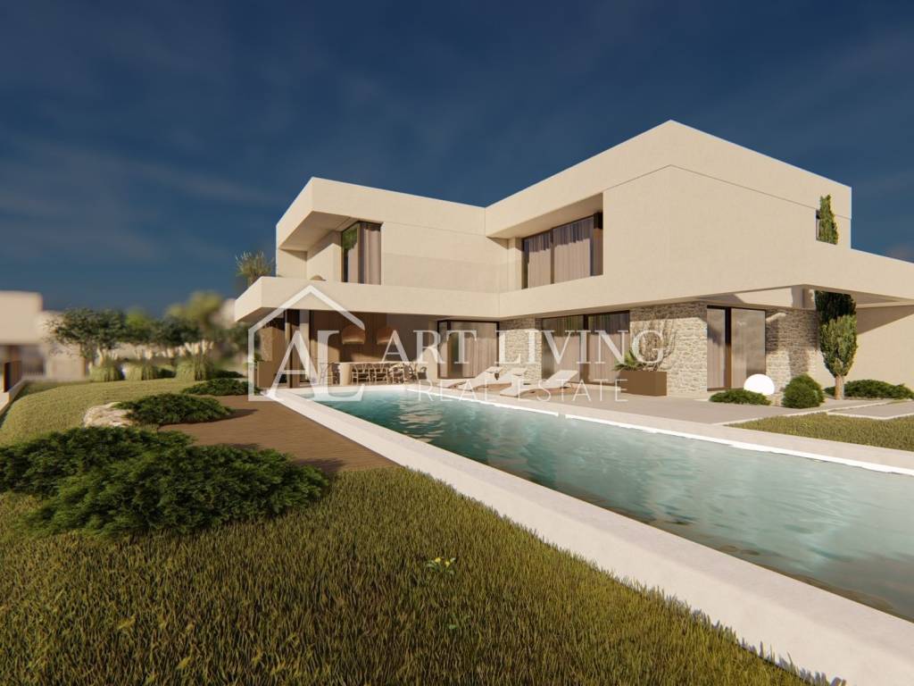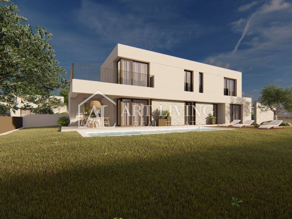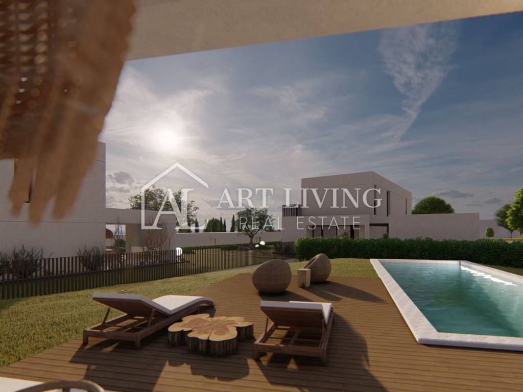 luxury villa for sale in a new residential area near Porec. This luxury resort of 14 villas designed in a modern Mediterranean architectural style fits perfectly into the environment with its architecture and gardens, overlooking the sea.