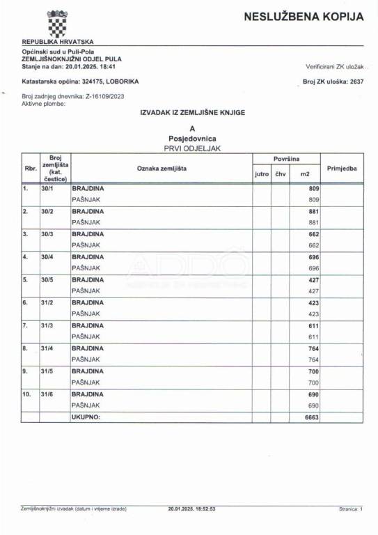 1. parcela od 809 m2 - 44.495,00 eura