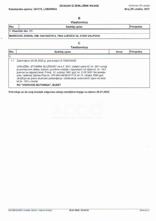 Vlasništvo je čisto 1/1.