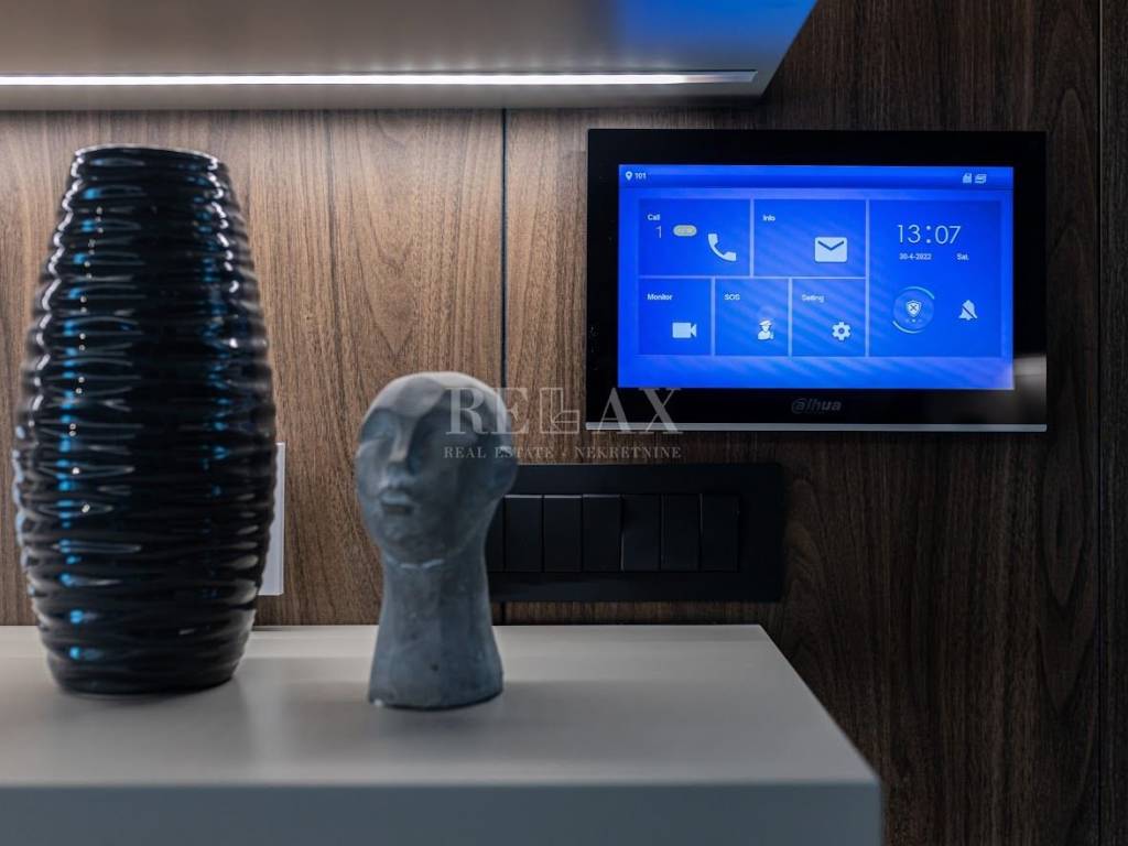 The property is equipped with a smart system, fan-coil modern heating and cooling system, elevator, alarm, video surveillance, and is fully furnished with custom-made luxury furniture.