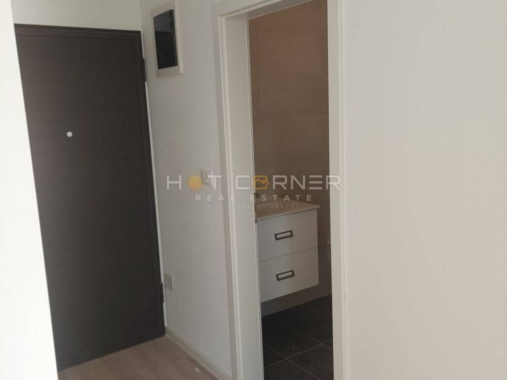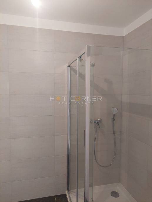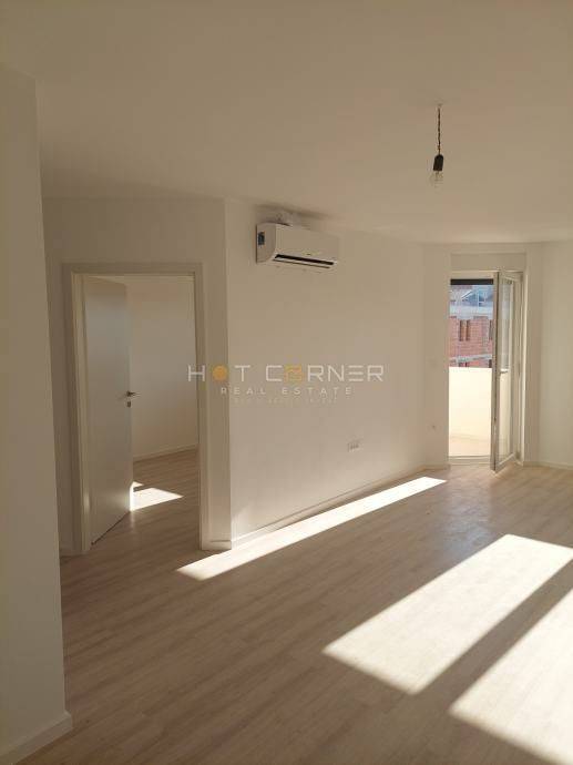 Beautiful and quiet residential area, smaller apartment on the 4th floor of a new building with an elevator, 48 m², with the following layout: entrance hallway, bathroom, living room with kitchen and dining area, one bedroom, south-facing terrace, one outdoor parking space. The apartment is move-in ready, unfurnished, connected to electricity, water, sewage, usage permit in the process of being obtained, security entrance door, air conditioning.