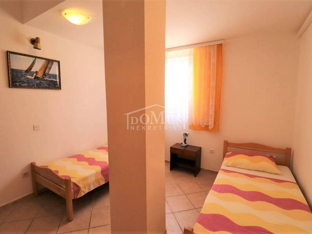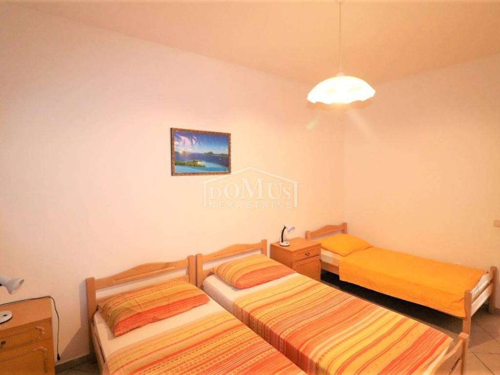 Quiet location, only 450m from Blue Beach, three-bedroom apartment with a total of 106.96 m2 of usable area, which is divided into one one-bedroom and one two-bedroom apartment. The apartments occupy the entire ground floor of the residential building, are furnished, air-conditioned and sold with furniture. The apartments have 1 parking space, as well as a garden of 9.15 m2. The building is located only 450m from the well-maintained Blue Beach, and 1000m from the center.