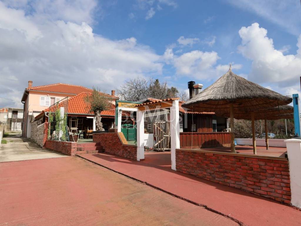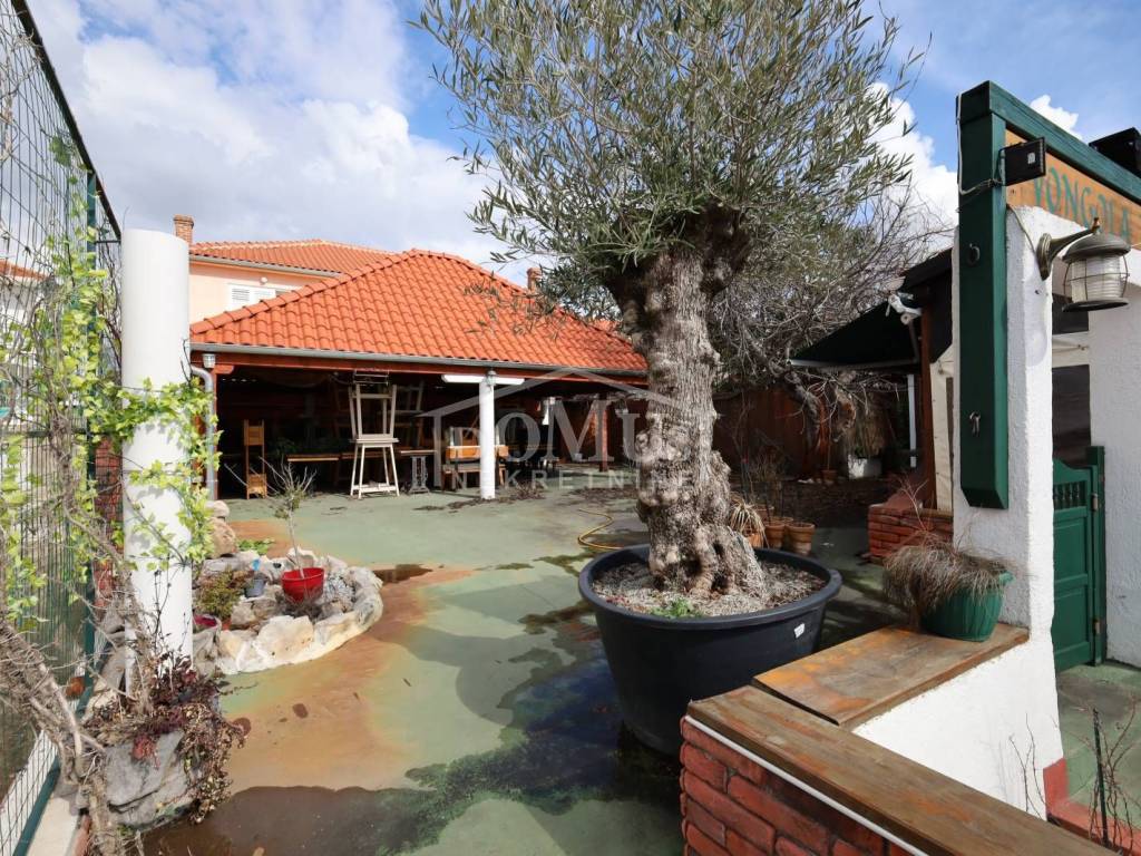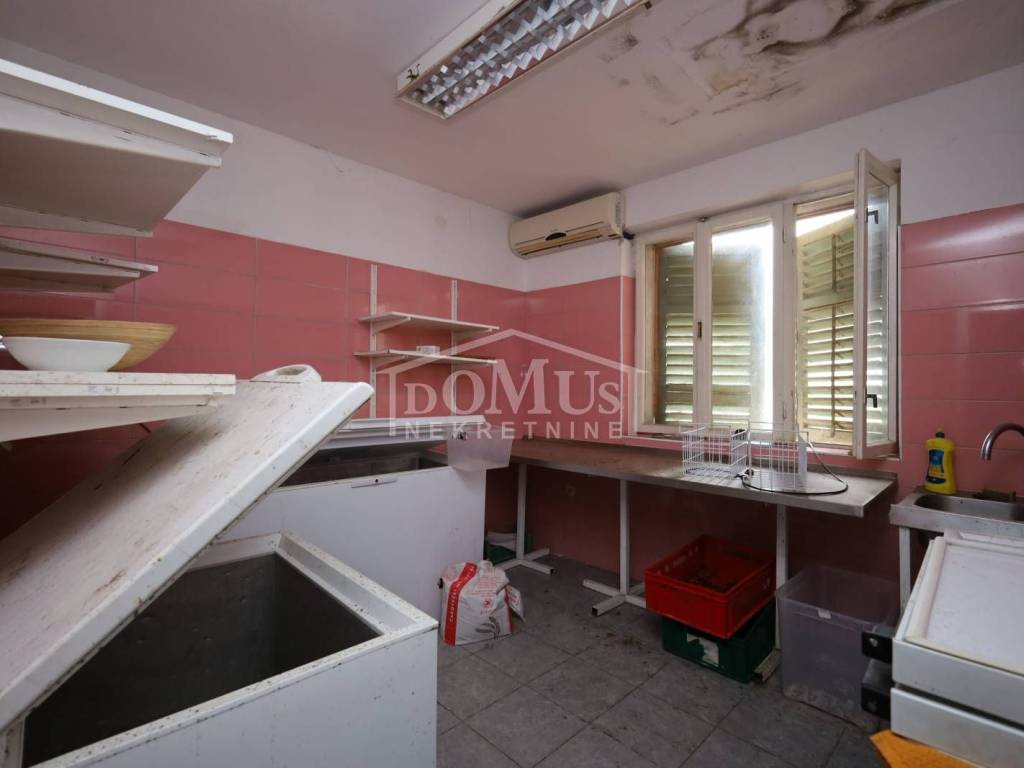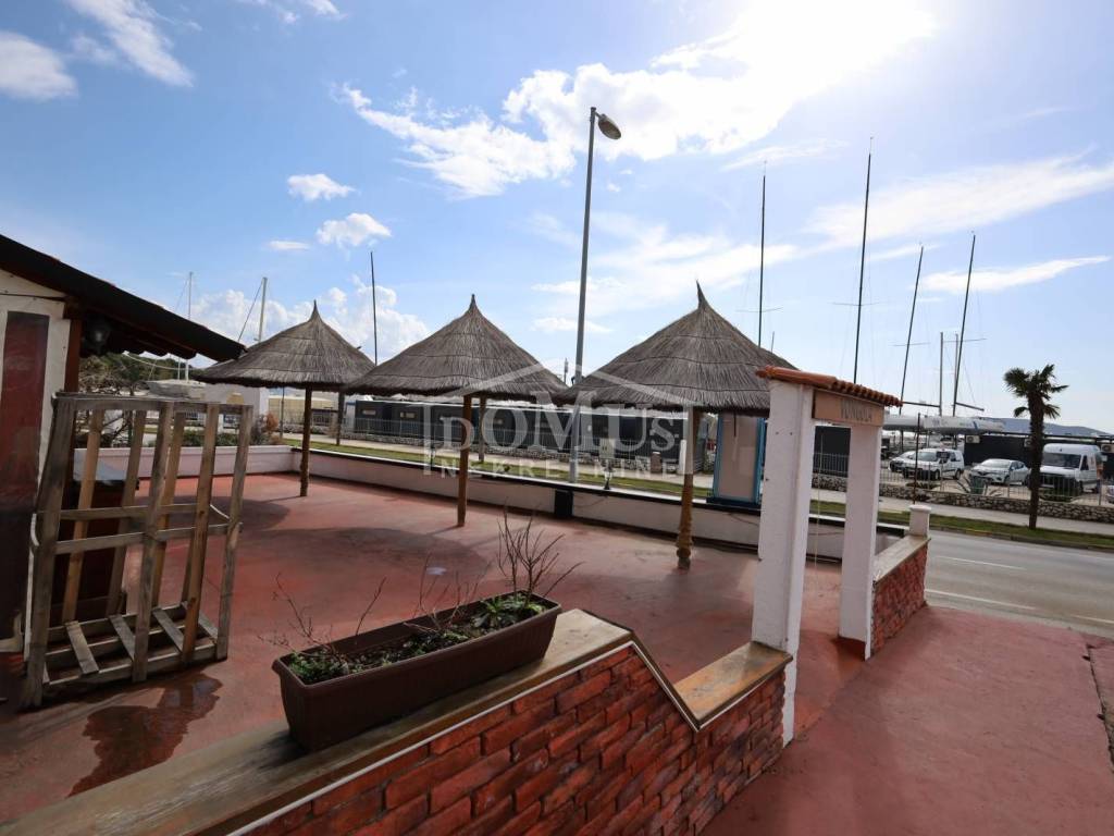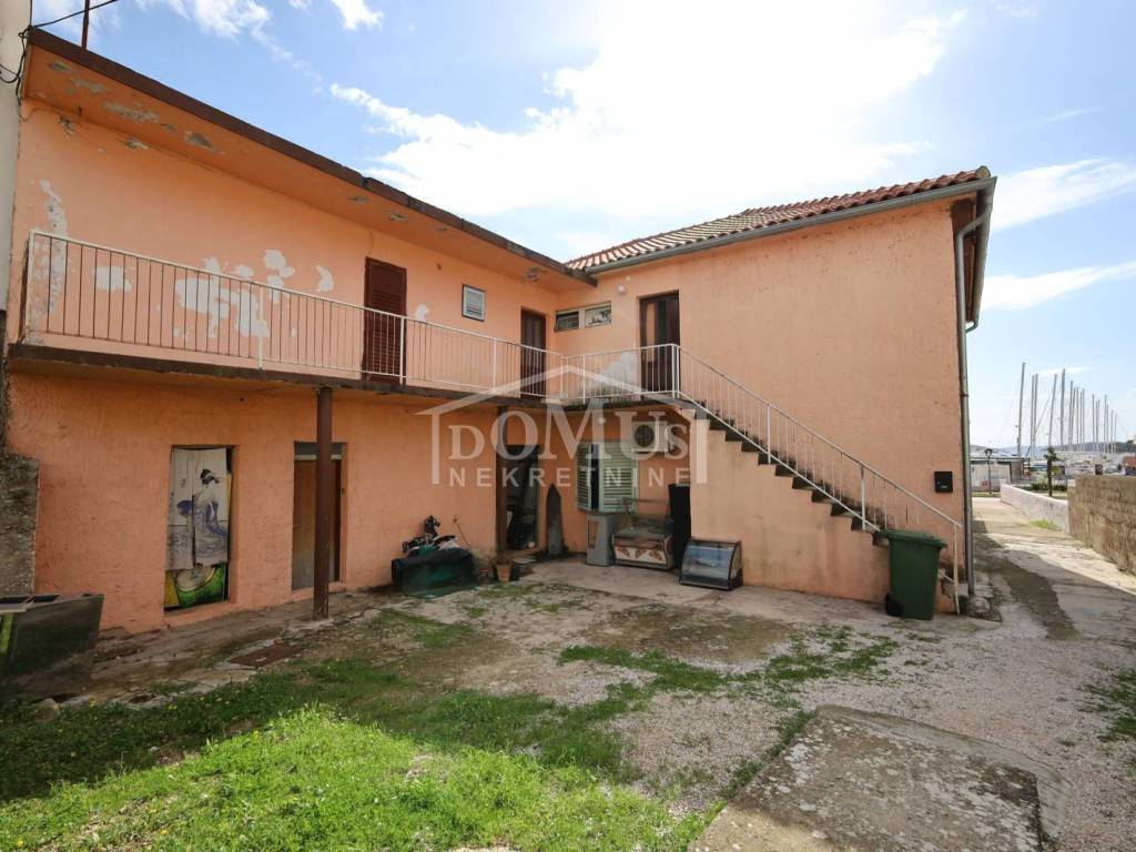 Attractive location, 1st row to the sea with a view of the marina, older house on two floors (ground floor + 1st floor) with a total of 250 m2 of usable area, the building is located on a plot of 763 m2. The house is for complete adaptation. The ground floor of the building is used as a catering area, in front of the catering area there is a paved terrace / shed of 300 m2 on which there is an additional outdoor bar with a barbecue and a canopy of wooden construction. The 1st floor is a living space of 125m2, consisting of 3 bathrooms, two corridors, 6 bedrooms and a balcony. The facility has connections to the infrastructure. The distance from the landscaped beach is 200m.