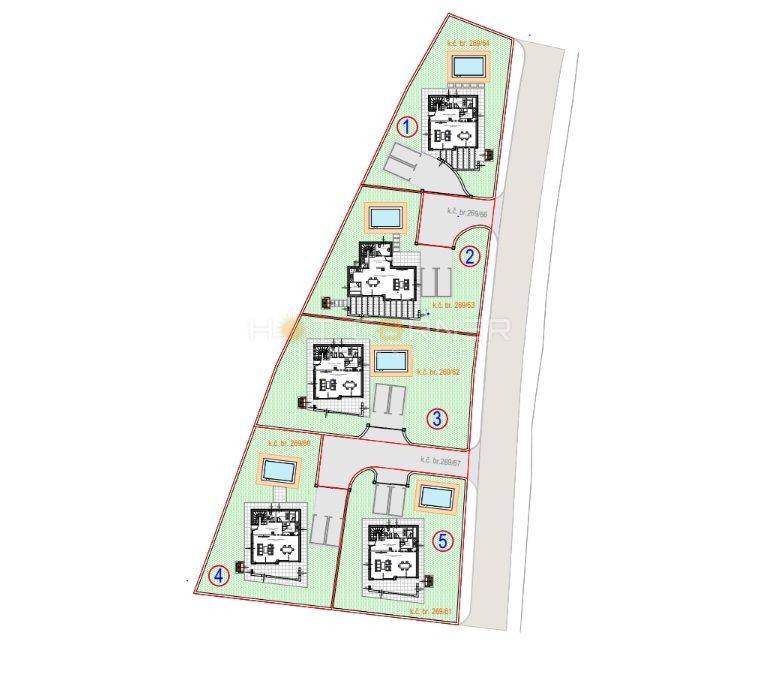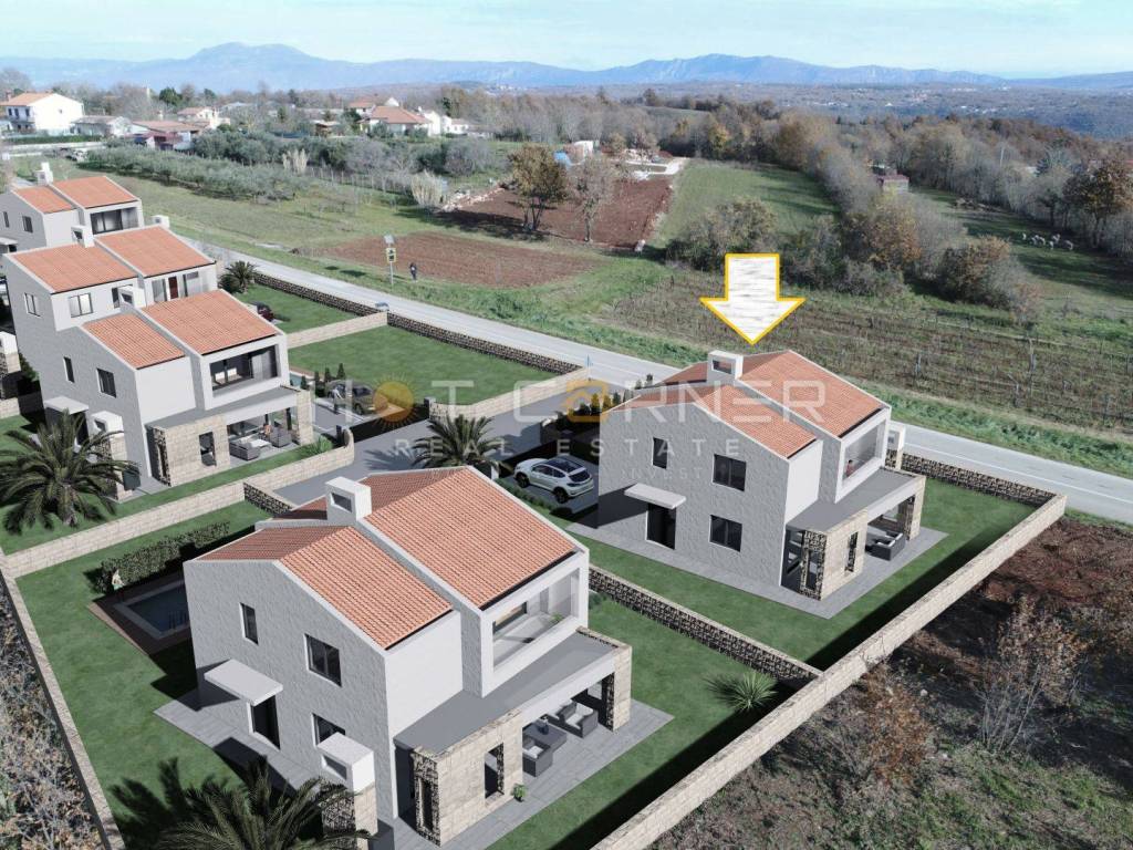 Za svaku parcelu je već izrađen idejni projekt za izgradnju vile katnice s bazenom, sa 3 spavaće sobe, 3 kupaone i pogledom na more, u modernom stilu s mediteranskim detaljima. Budući kupac može preuzeti ovaj idejni projekt ili dati izraditi drugi, prema svojim željama.