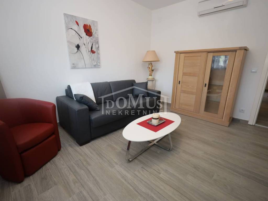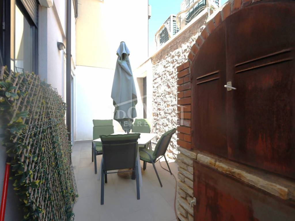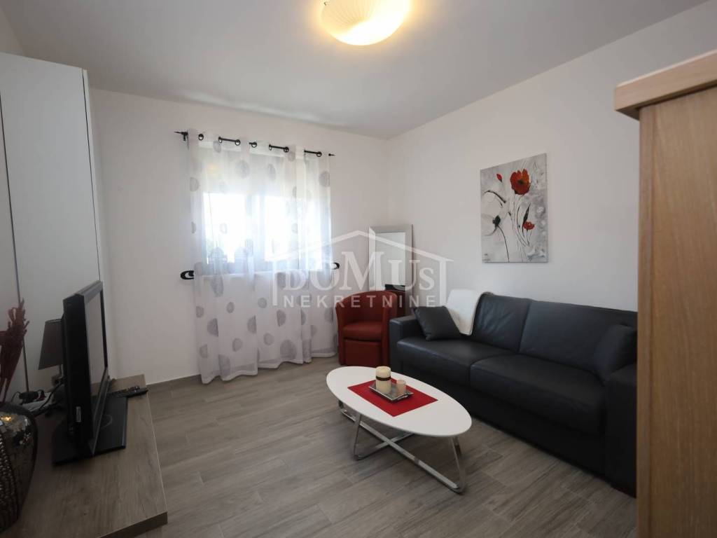 Vodice, excellent location, only 200 m from the city center, there is an apartment on the ground floor of the building, marked S1, with a total area of 50.60 m2, which is fully equipped with furniture, a mini kitchen, and other equipment. The apartment consists of: entrance hall, kitchen + dining room, living room, one bedroom, bathroom, closed yard of approx. 14.50 m2. The apartment also has one outdoor parking space. The building is 550 m from the beach and 200 m from the city center.
