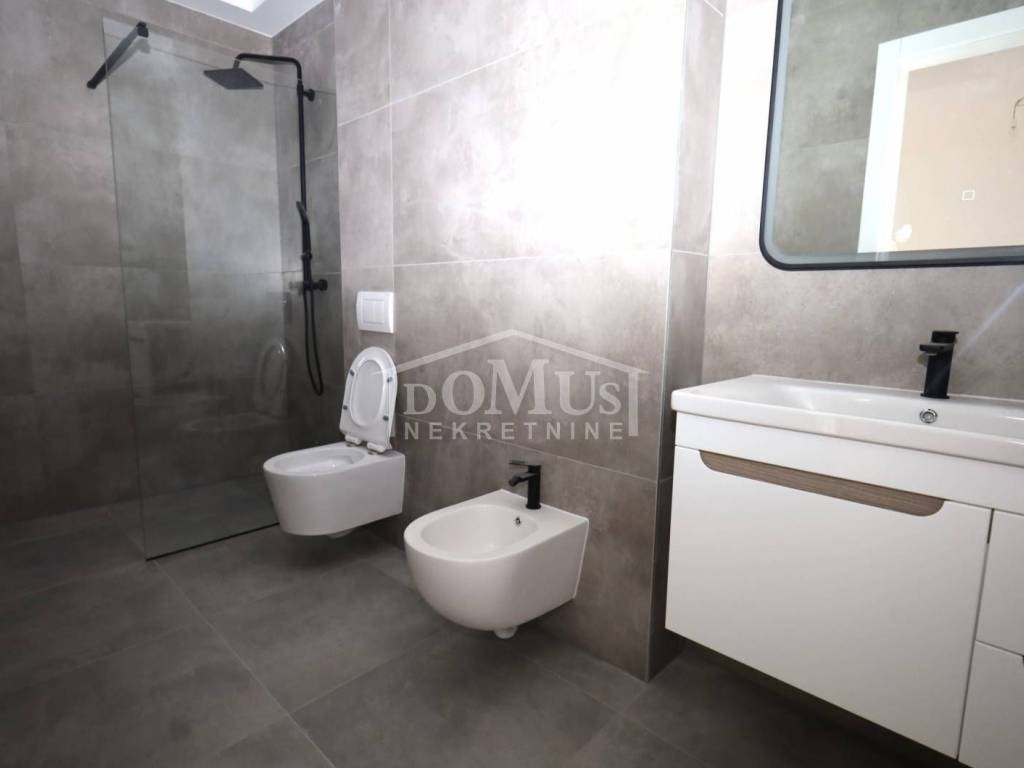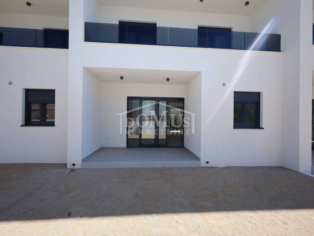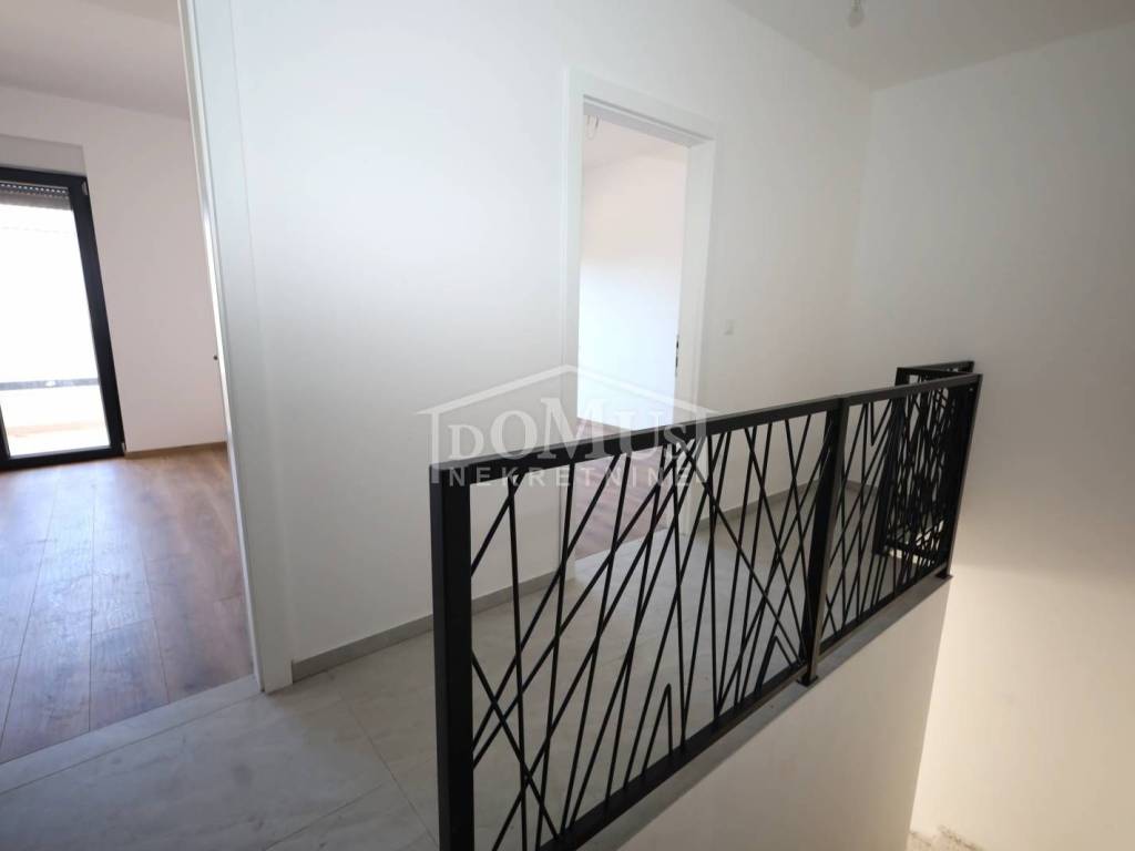 Vodice, new construction, residential building with 8 residential units, on 3 floors: ground floor + 1st floor + 2nd floor. All apartments will be equipped with electric underfloor heating in the bathroom and living room, and in the bedrooms, there is preparation for the installation of underfloor heating, air conditioners in the living room and all bedrooms, electric roller shutters, PVC joinery, mosquito nets, intercom with video monitor. Residential unit S3 – is a two-story apartment (ground floor + 1st floor) with a total of 102,61 m2, and consists of a hallway, kitchen and dining room with living room and access to the terrace, utility room and bathroom on the ground floor, internal stairs lead to the first floor where there are 2 bedrooms, one bathroom and a large loggia. The apartment has 2 parking spaces in the courtyard of the building. The building is located 1,800 m from the beach, and 1,500m from the center of Vodice.