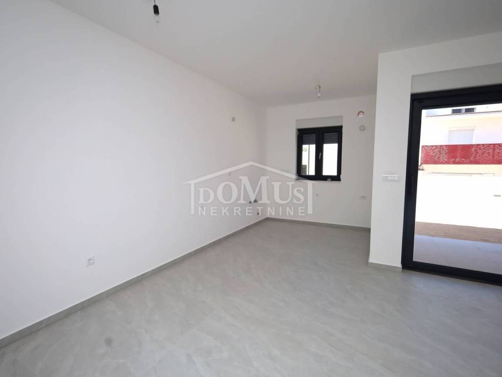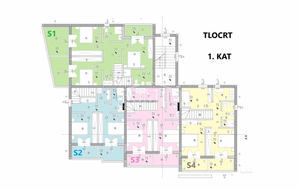 Vodice, new construction, residential building with 8 residential units, on 3 floors: ground floor + 1st floor + 2nd floor. All apartments will be equipped with electric underfloor heating in the bathroom and living room, and in the bedrooms, there is preparation for the installation of underfloor heating, air conditioners in the living room and all bedrooms, electric roller shutters, PVC joinery, mosquito nets, intercom with video monitor. Residential unit S4 – is a two-story apartment (ground floor + 1st floor) with a total of 115.82 m2, and consists of a hallway, kitchen and dining room with living room and access to the terrace, utility room and bathroom on the ground floor, internal stairs lead to the first floor where there are 2 bedrooms, one bathroom and a large loggia. The apartment has 2 parking spaces in the courtyard of the building. The building is located 1,800 m from the beach, and 1,500m from the center of Vodice.