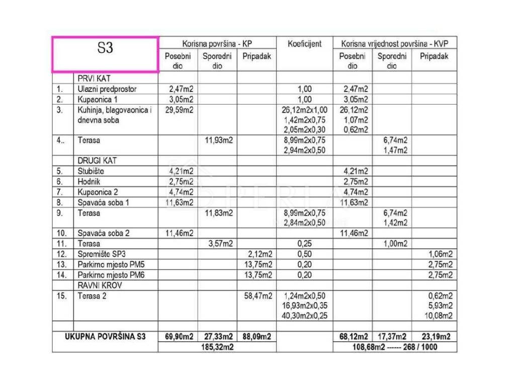 The apartment also has a roof terrace of 59 m2, storage room and two parking spaces.