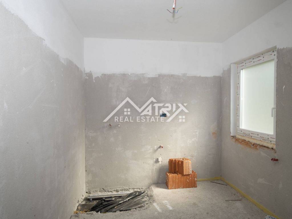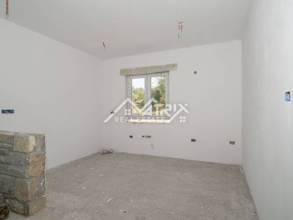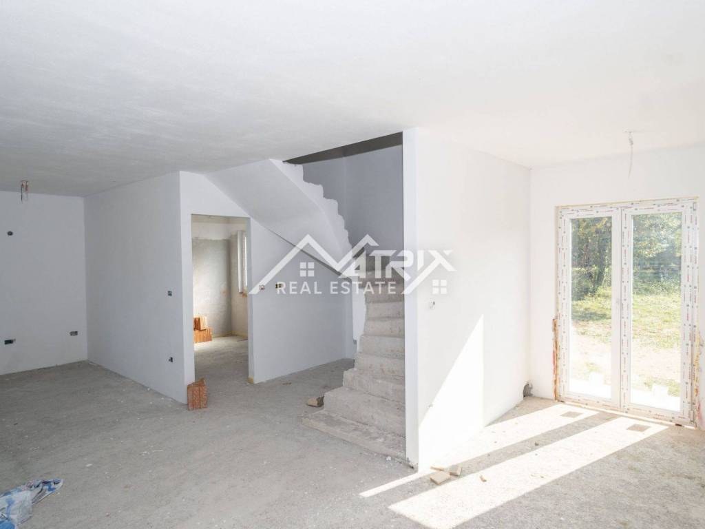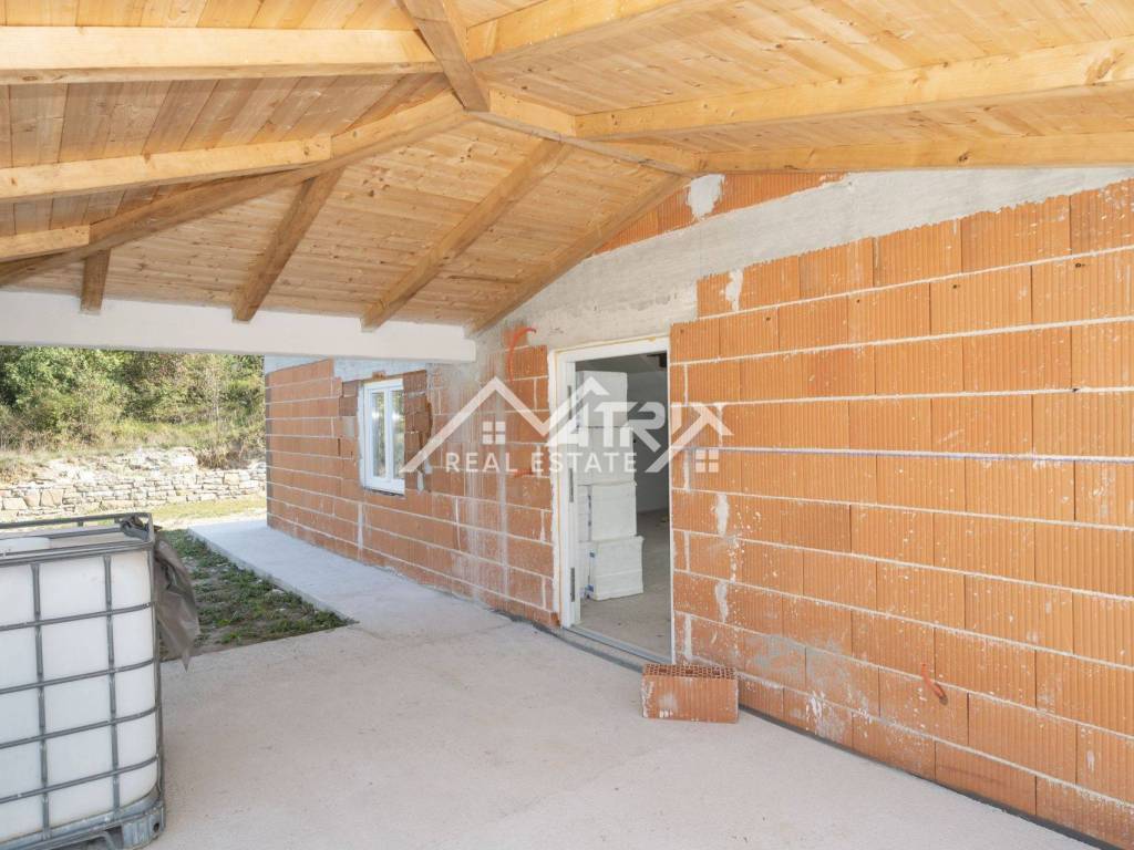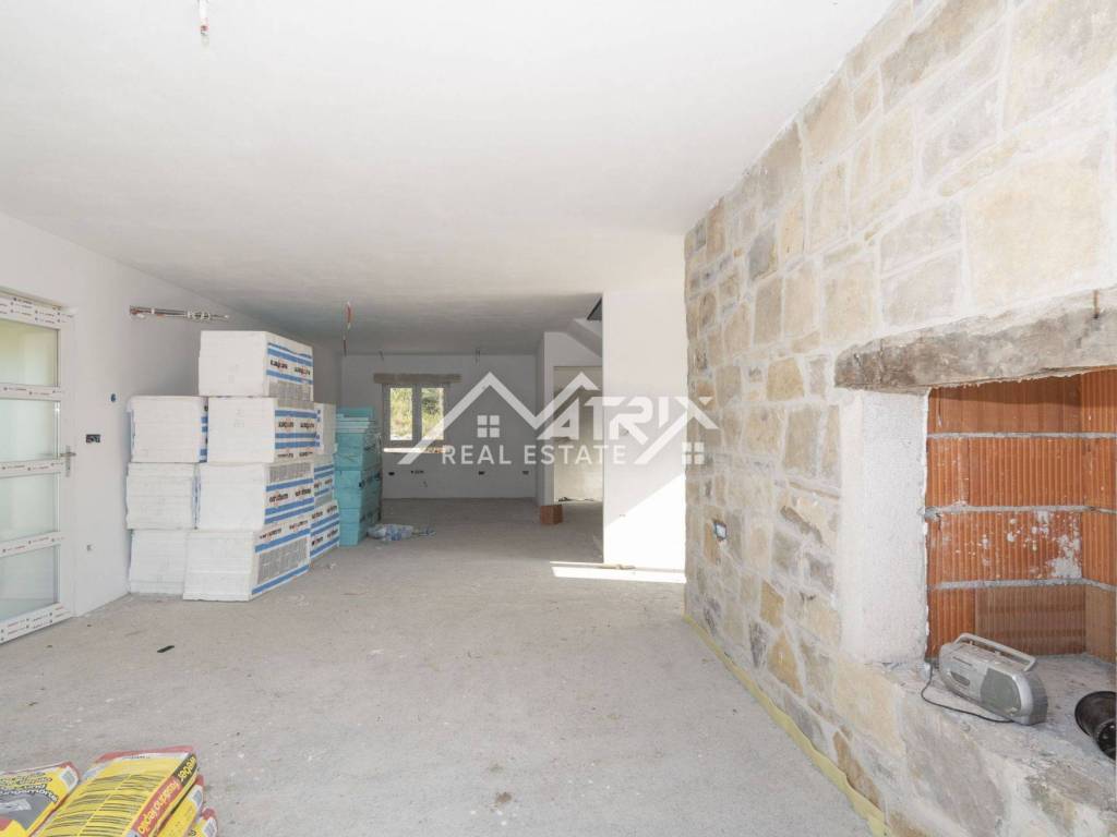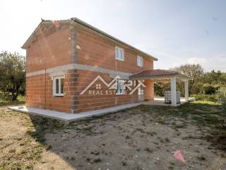 The house is located on a plot of land of 1030 m2, while the area of the house itself is 119 m2. On the ground floor there is a living room, dining room and kitchen in an open space concept, together with one bathroom and a small storage room. The living room will have a fireplace for added atmosphere, while a large glass wall extends towards the sun deck and pool. Spacious windows and doors provide plenty of natural light throughout the ground floor.