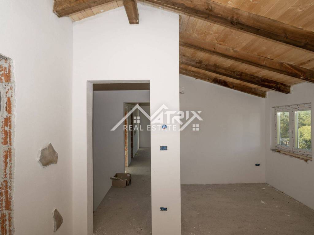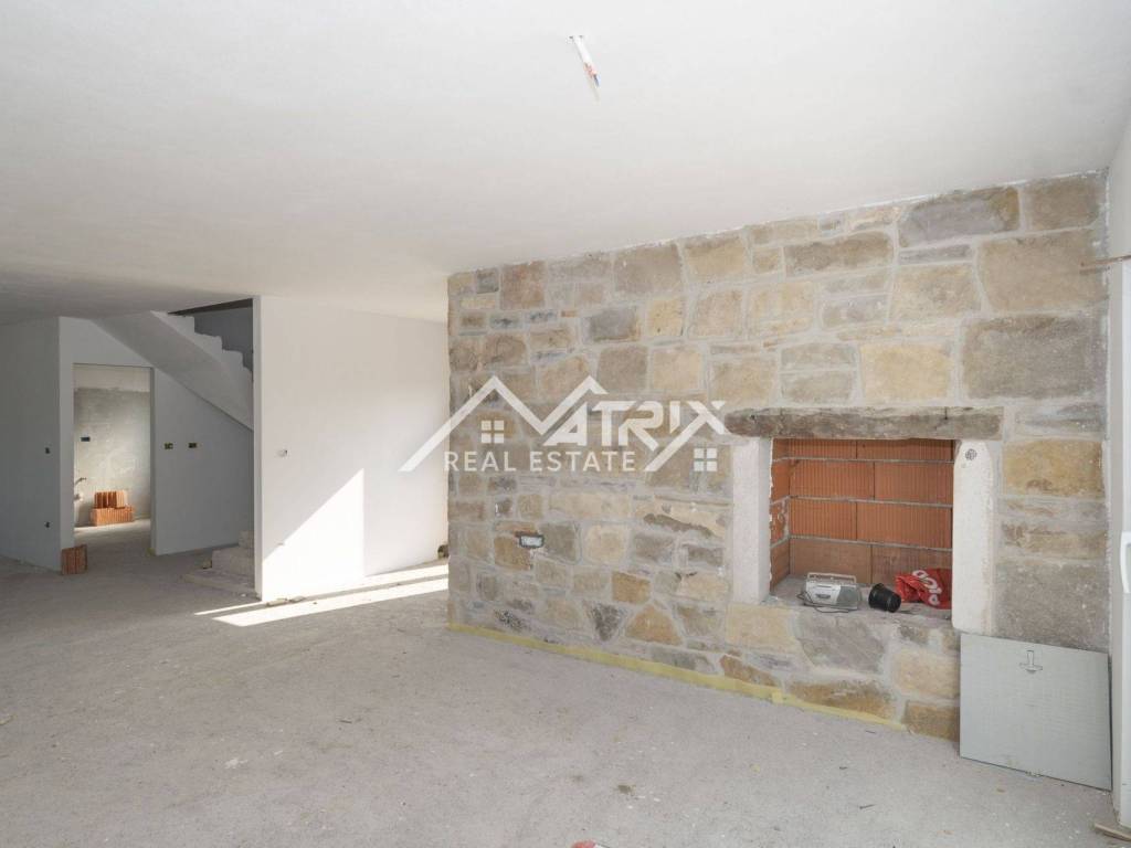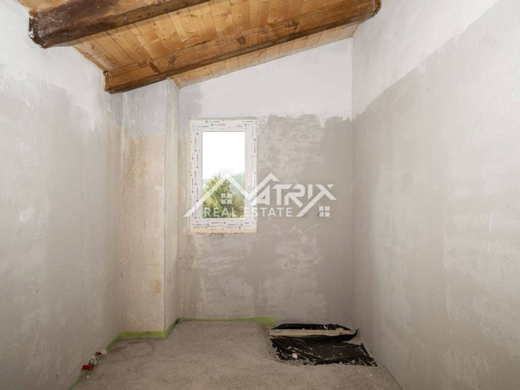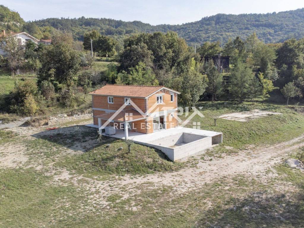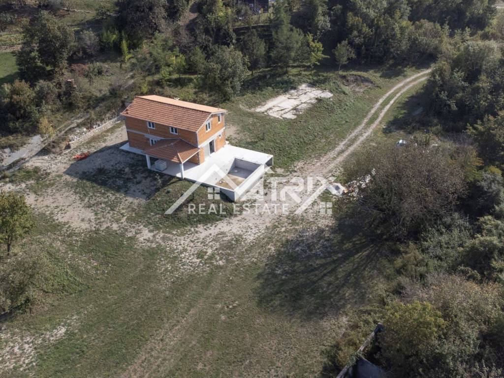 The house is located on a plot of land of 1030 m2, while the area of the house itself is 119 m2. On the ground floor there is a living room, dining room and kitchen in an open space concept, together with one bathroom and a small storage room. The living room will have a fireplace for added atmosphere, while a large glass wall extends towards the sun deck and pool. Spacious windows and doors provide plenty of natural light throughout the ground floor.