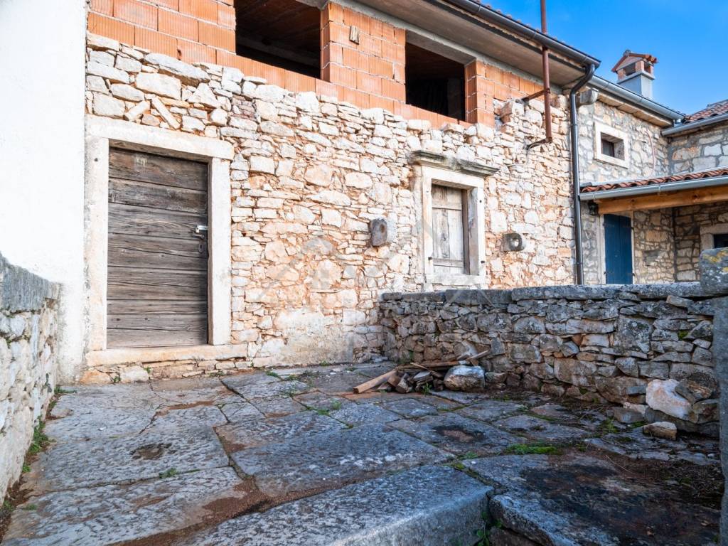 A terraced house with started renovation is for sale. The surface of the house on all three floors is 210 m2 (70 m2 per floor) and has a garden of 250 m2, which is accessed through the house. The house is located in a quiet Istrian village 11 km from the city of Poreč.
