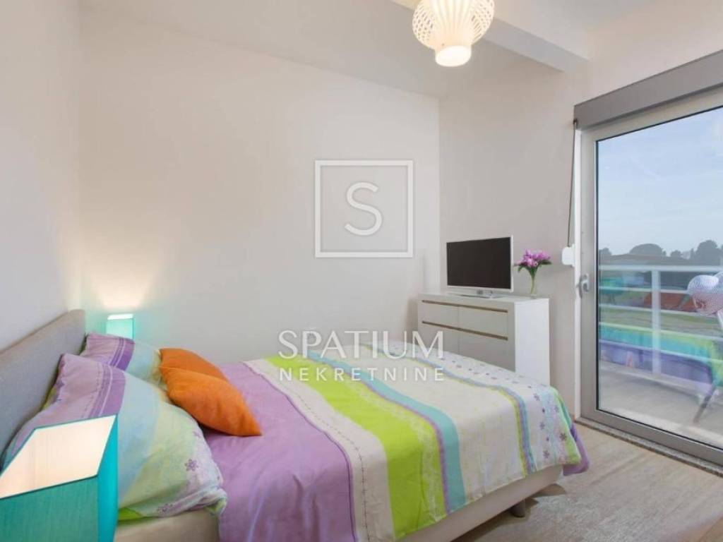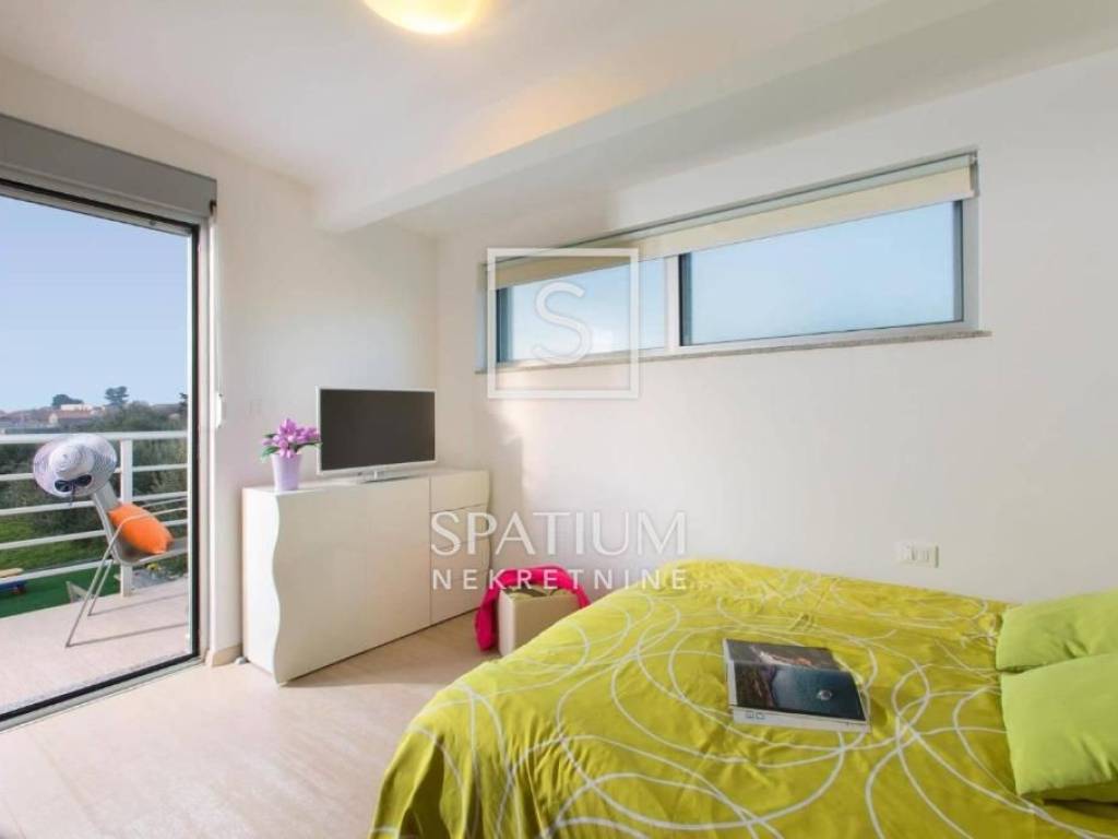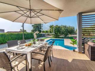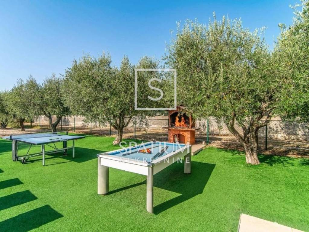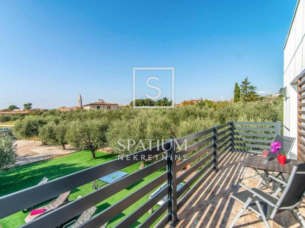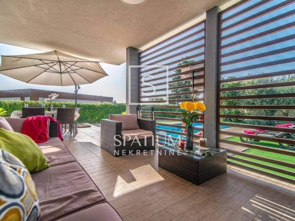 VODNJAN, we present a modern villa situated in a unique and peaceful location, offering the perfect combination of luxury, privacy and functionality. The villa extends over 173 m² of fully equipped and furnished living space, positioned on a spacious and beautifully landscaped plot of 1,294 m² with a Mediterranean ambiance. The interior features three spacious, air-conditioned bedrooms filled with natural light, an elegantly designed living room, and a modern kitchen connected to the dining area. The outdoor area includes a heated swimming pool with a sunbathing deck, ideal for year-round use, as well as seven private parking spaces. An additional highlight is the well-maintained olive grove within the property, which yields 20 to 30 liters of premium olive oil annually. The villa has been successfully rented out for many years, with proven income and a base of returning guests, making it an excellent choice both for personal use and for investors seeking a secure and profitable tourist property.