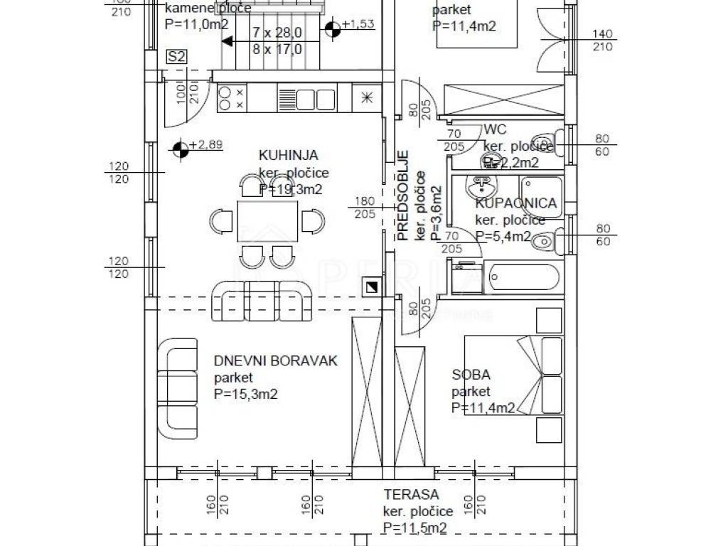 PETRČANE - PUNTA RADMAN, a spacious two-bedroom apartment of 90.76 m2 is for sale on the 1st floor of a small residential building with 3 apartments.