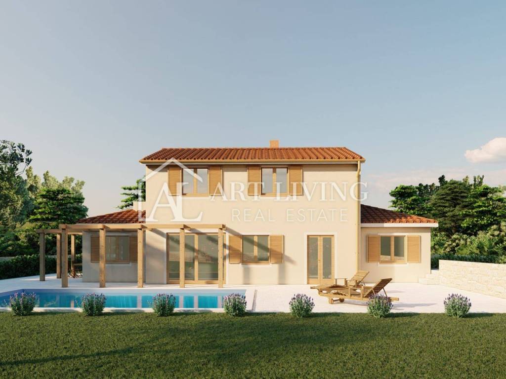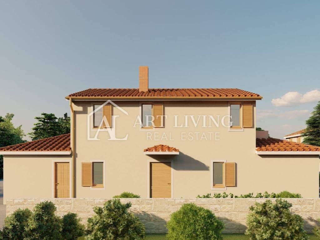 A beautiful new house for sale, with a spacious swimming pool, located in a quiet location surrounded by nature and greenery. It is 15 km from the town of Poreč and the sea, 40 km from the border crossing and 60 km from Portorož airport, and 30 km from Pula airport.