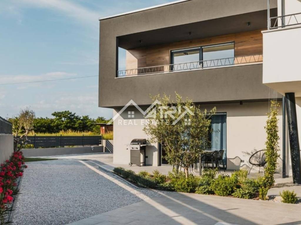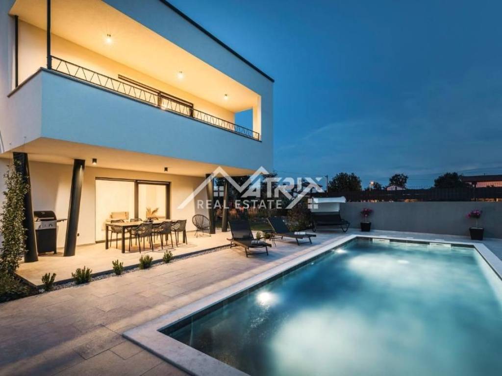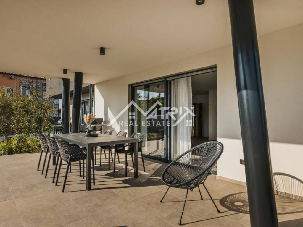 Located in a peaceful area near Umag, this contemporary villa with a swimming pool offers the perfect blend of comfort, privacy, and investment potential. The property sits on a landscaped plot of 862 m², while the total living area of 266 m² is spread over two levels.