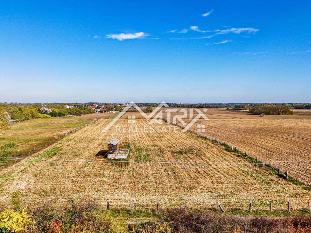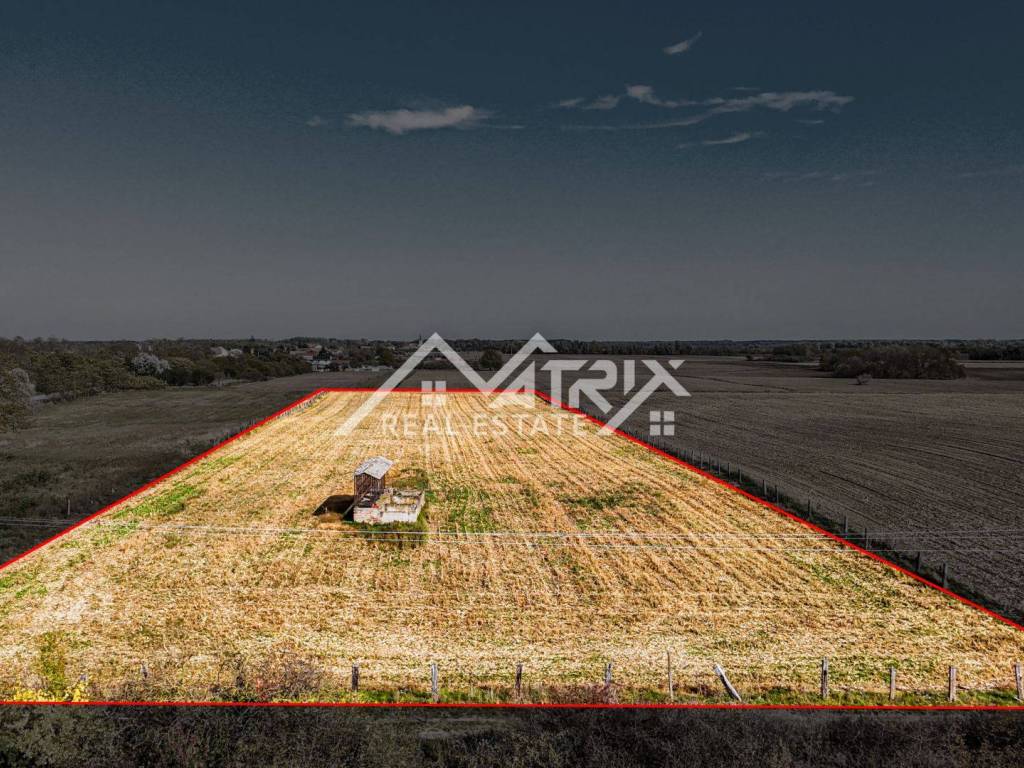 U mirnoj zoni izvrsno povezanoj glavnom prometnicom nalazi se prostrano građevinsko zemljište ukupne površine 16.690 m². Parcela ima pristup s dvije strane (sjever/jug) i većim je dijelom ograđena. Unutar zemljišta evidentiran je zidani objekt od približno 50 m², postoji vlastiti bušeni bunar te je plaćen priključak električne energije; ostala komunalna infrastruktura (voda, kanalizacija, plin, struja) dostupna je u okruženju.