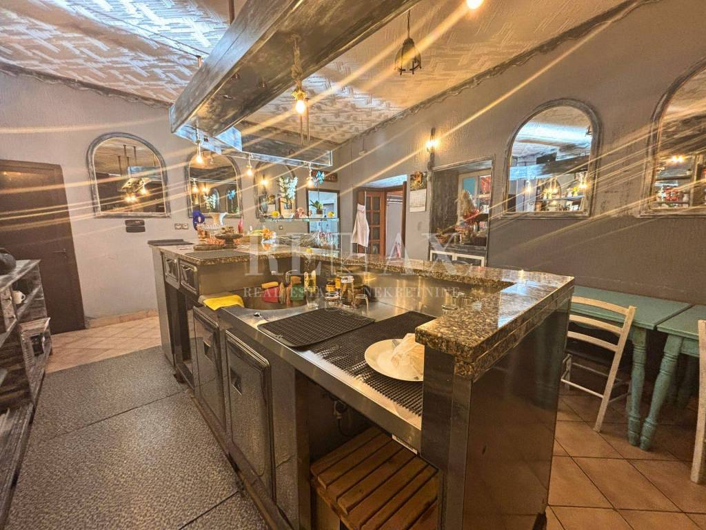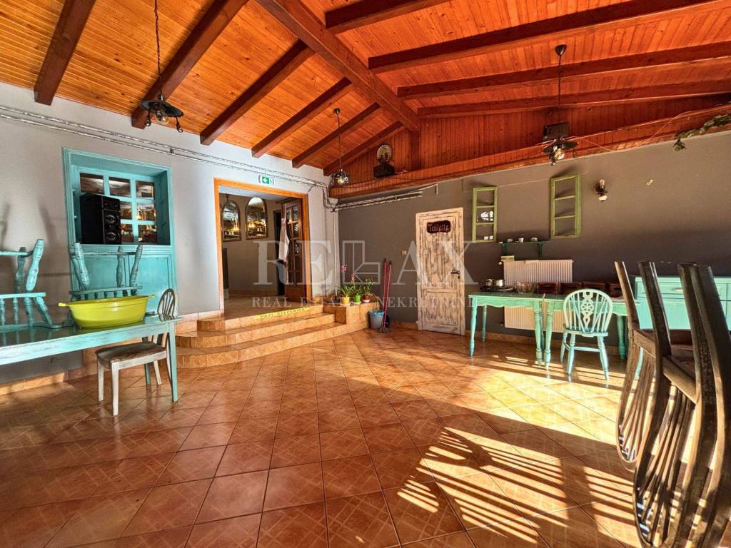 Poslovni prostor i stambeni prostor prostiru se na 220 m² i potpuno je opremljen za nastavak ugostiteljske djelatnosti. Sastoji se od dvije sale za goste, šanka, profesionalne kuhinje, ostave, dvije sanitarne jedinice te natkrivene terase s vanjskom pečenjarom koja dodatno obogaćuje ponudu prostora. Ambijent odiše toplinom zahvaljujući drvenim stropovima s gredama i šarmantnim rustikalnim elementima, stvarajući ugodnu atmosferu za goste tijekom cijele godine.