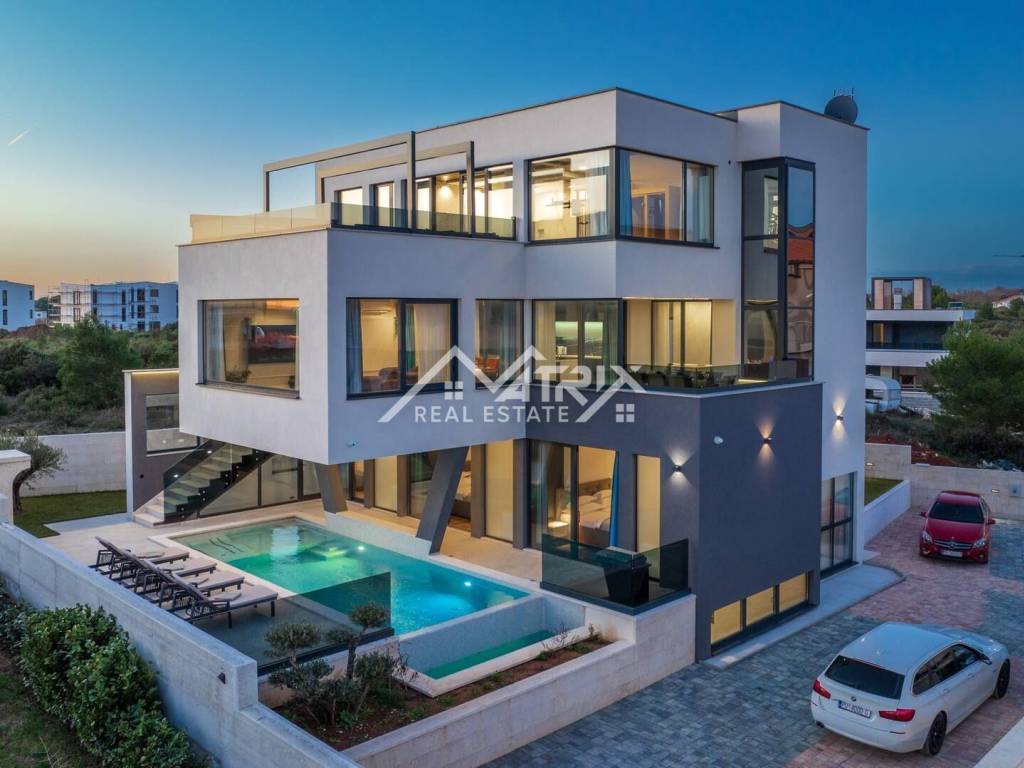 This luxurious modern villa is located just 250 meters from the sea, in one of the most attractive locations in this part of Istria. With a total living area of 400 m², this property spans three floors and includes a 200 m² garden, offering privacy and space for relaxation.