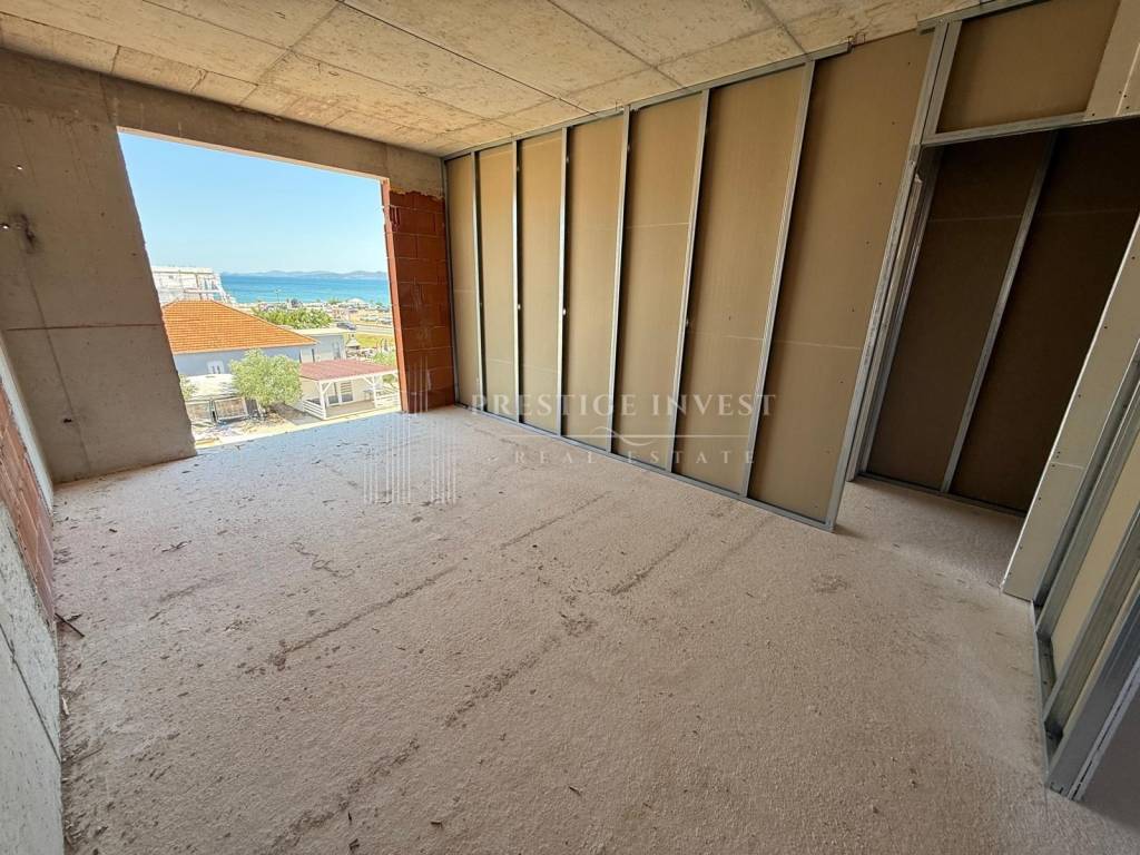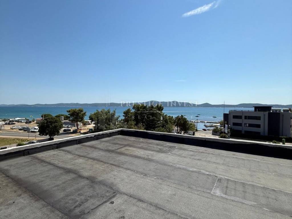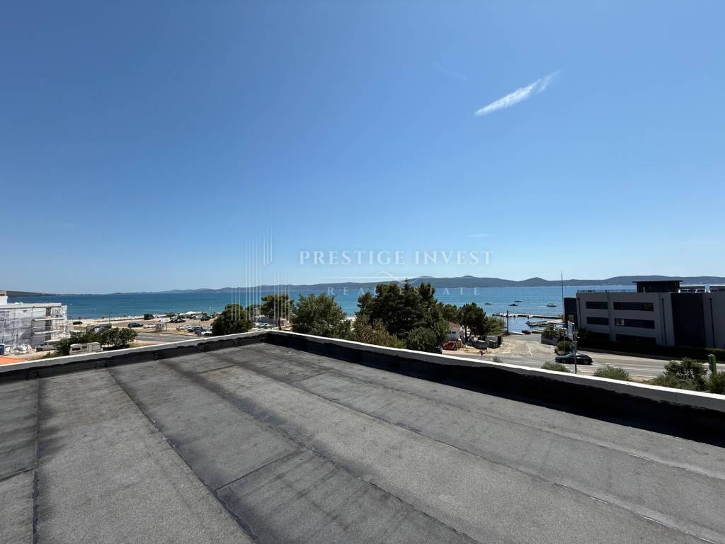 For sale is a modern four-room penthouse with a roof terrace with a summer kitchen and a jacuzzi on the second floor (south orientation) in Sukošan, first row by the sea. Penthouse has a sea view. The apartment has a total living area of ​​249.10 m2 and consists of:
