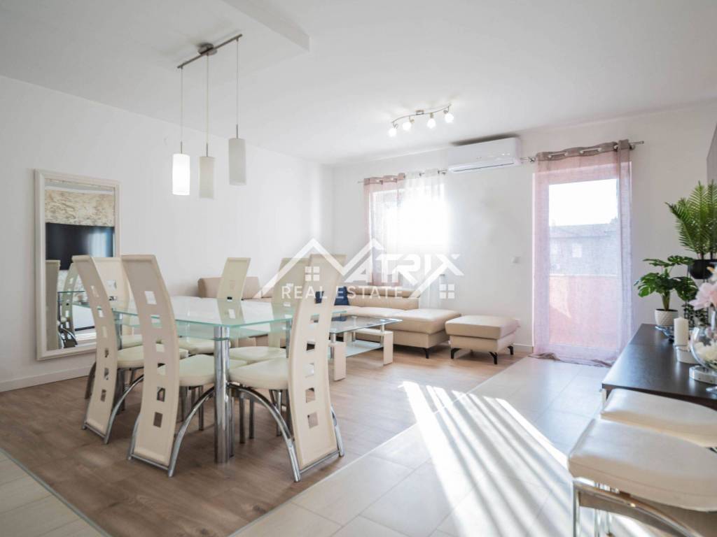 In the peaceful settlement of Betiga, near Vodnjan, this bright and beautifully furnished apartment is located on the elevated ground floor of a well-maintained building constructed in 2007, comprising a total of six units. The quiet street and tidy surroundings offer a pleasant atmosphere for everyday living, holidays, or rental investment.