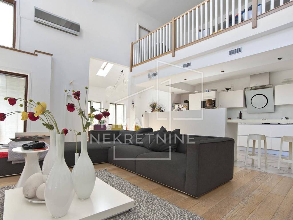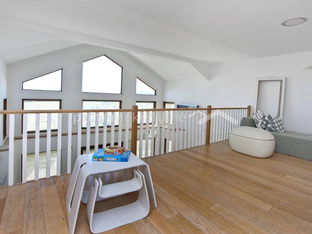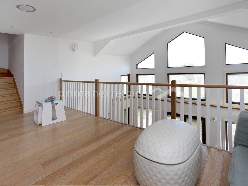 - attic with an area of ​​120.82 m2, where there are three rooms, two bathrooms, three wardrobes and a gallery