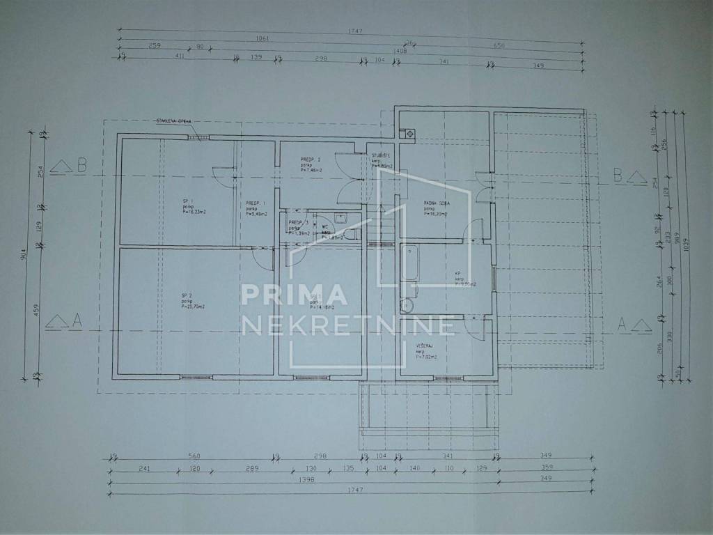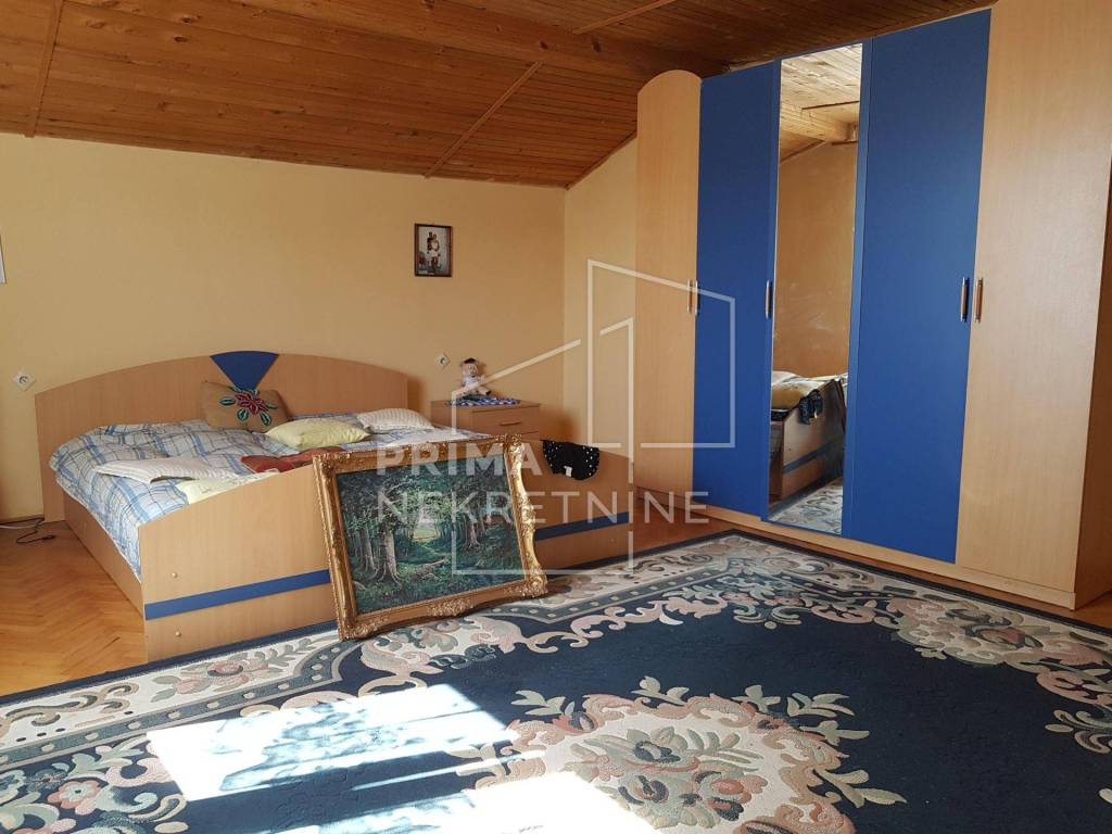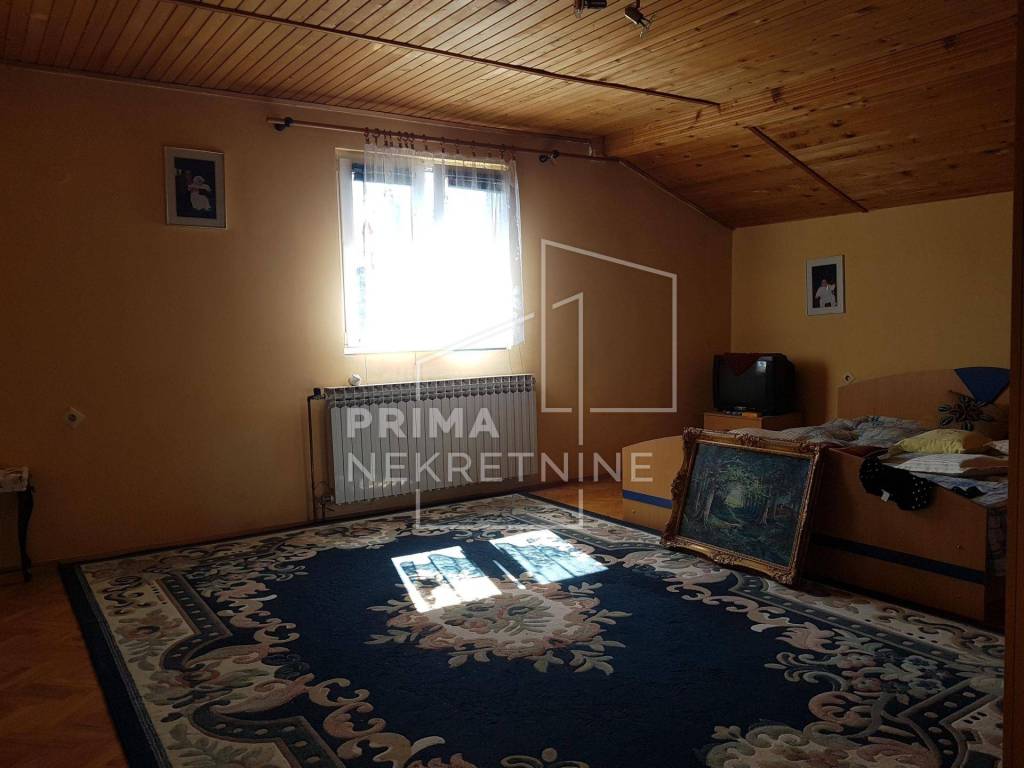 Detached house built in 2005 on a plot of 445 m2. The layout of the house is 165 m2 and consists of two floors, ground floor and attic. The area of the ground floor is 140 m2 and consists of a spacious living room connected to the dining room and kitchen, bedroom, bathroom, utility room, study, garage and hallway. An internal staircase is connected to the attic of 145 m2, and it consists of three bedrooms, living room, bathroom, separate toilet, hallway and a large covered terrace of northwestern orientation of 34.71 m2. The neighborhood is quiet and the house is 2 minutes away from public bus and train. Possible purchase only in cash.