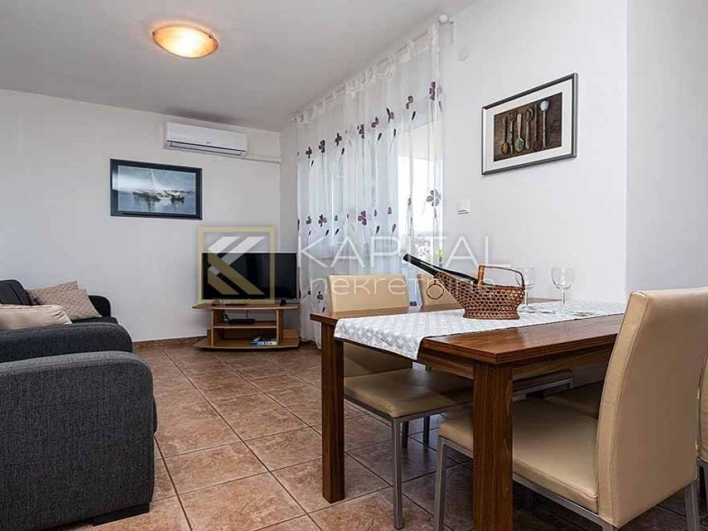 An apartment on the high ground floor with a storage room in the basement is for sale, with a total area of 107 m2. It consists of: living room with kitchen and dining room, three bedrooms, bathroom, toilet and balcony. Apartment has two parking spaces. Furniture is sold in the price. Neat building of 6 apartments, neat documentation. It is 400 m from the sea and a sandy beach. Shops and bus stops are 50 m away. For all information, call 385 91/5406-611