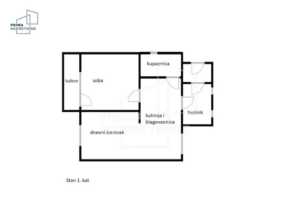 A two-room apartment of 64 m² is for sale, located on the first floor of a house in Črešnjevec, Remete.