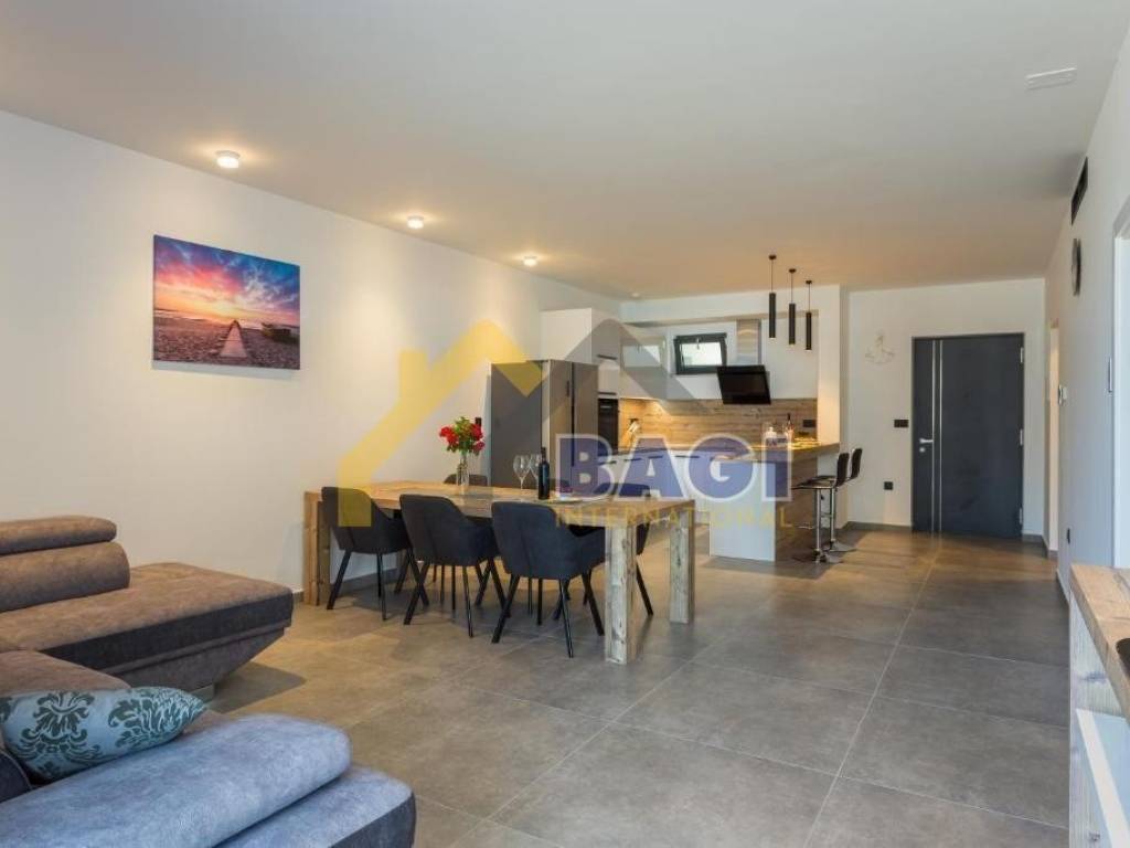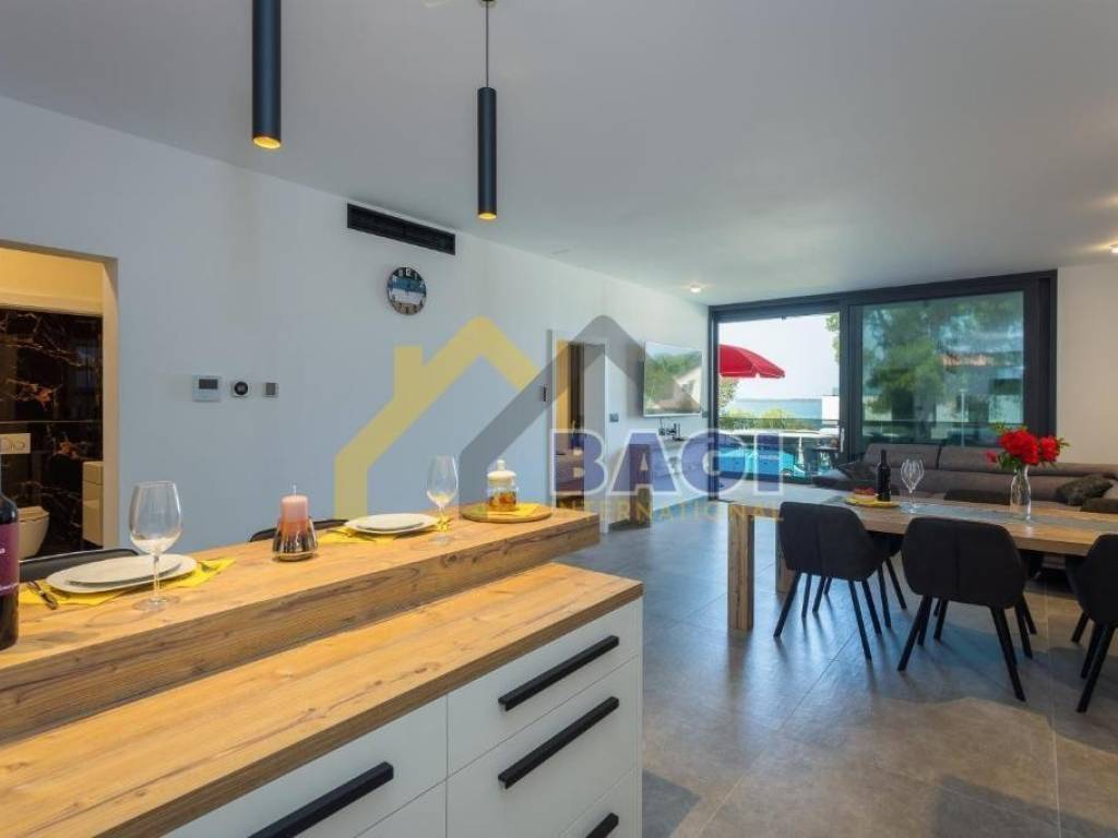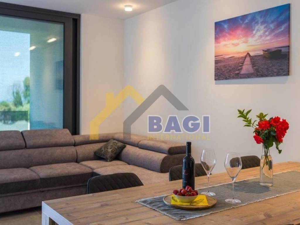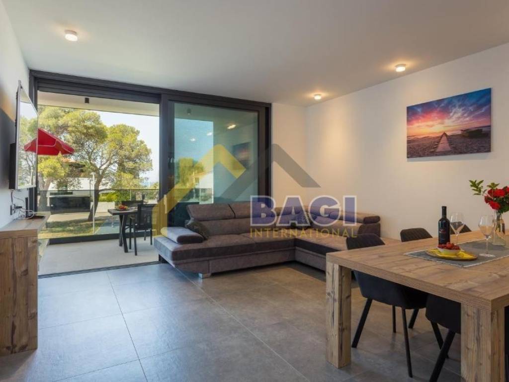 In an exclusive location, in the first row to the sea in Fazana, we are selling an apartment of 96m2. The apartment is for sale fully furnished with top quality furniture. The building was built in 2021. The apartment consists of a bedroom with bathroom, separate toilet, living room with kitchen and dining area and a large terrace overlooking the sea. The apartments are equipped with underfloor heating and air conditioning and all powered by a heat pump. It has its own parking space. The apartment is ready to move in!