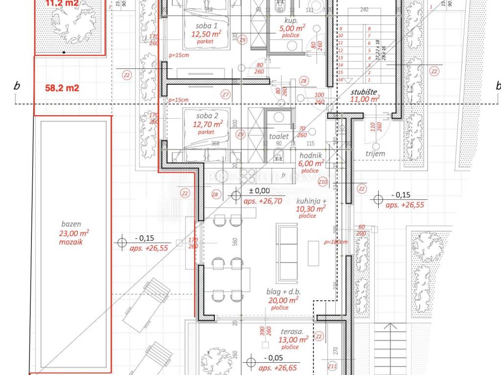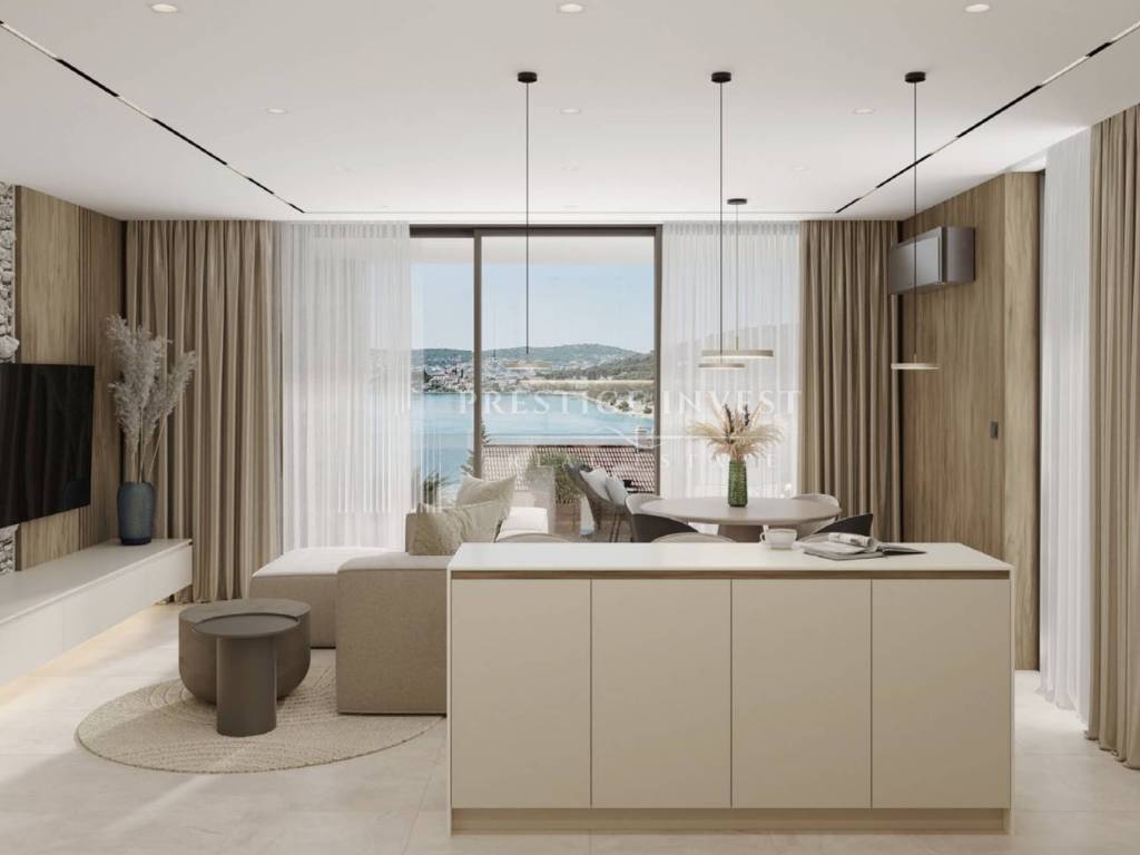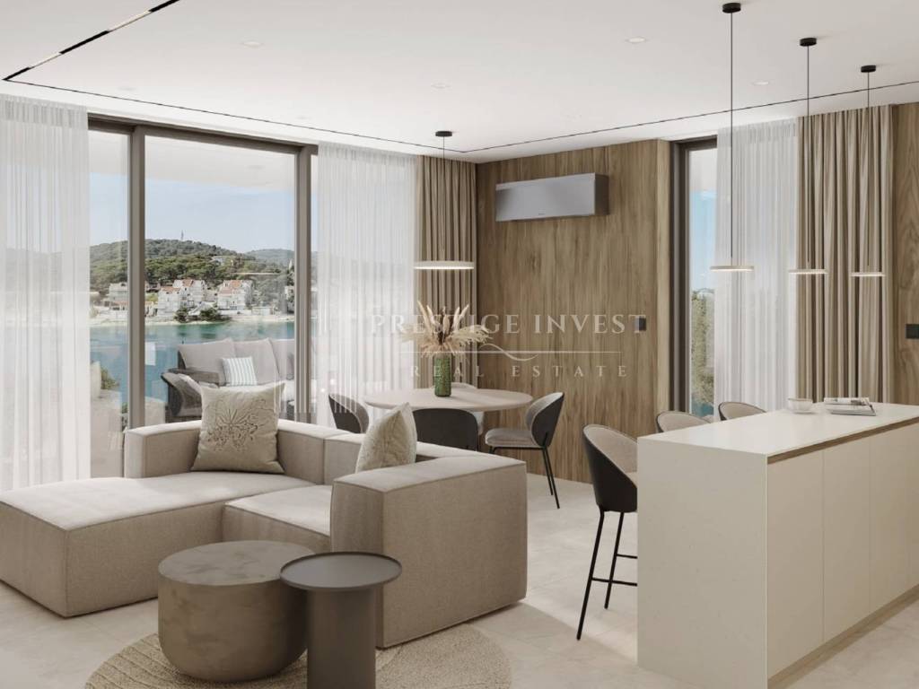 A modern luxurious two-bedroom apartment is for sale located in the elite part of Rogoznica (CENTER), only 70 meters from the sea and the beach.