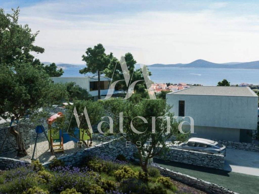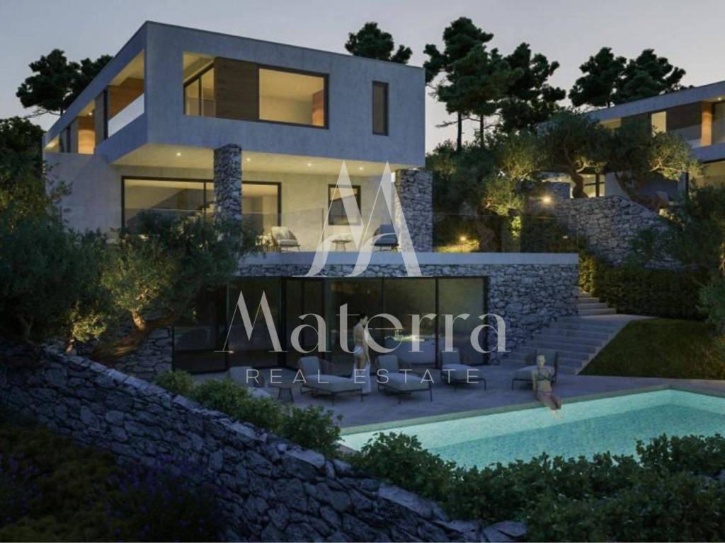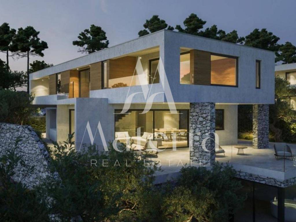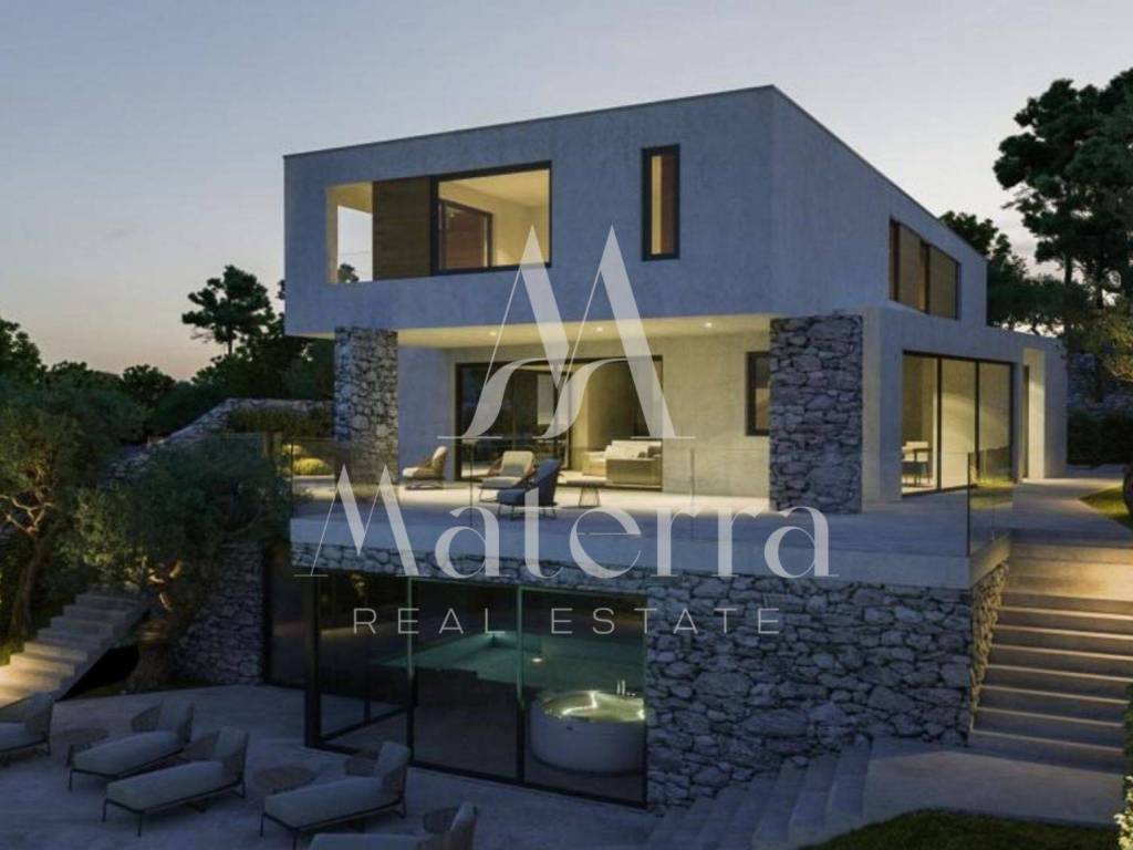 Located in one of the most sought-after areas on the coast, this impressive modern villa offers a stunning, uninterrupted view of the sea and nearby archipelago thanks to its elevated position.