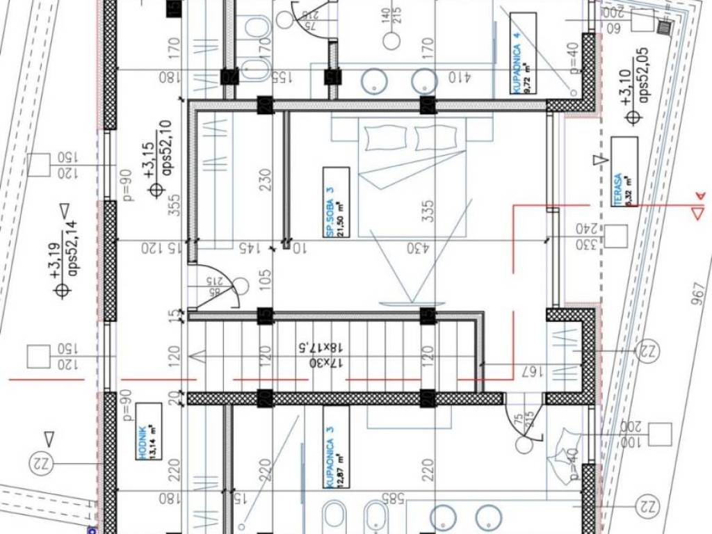 The first floor consists of three additional bedrooms, each with a private bathroom, walk-in wardrobe, and loggia. Net area of this level: 137.97 m².
