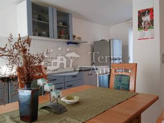 Internal stairs lead to the first floor, which represents the living area, and is characterized by a large open space with lots of light and high ceilings. There is a living room, kitchen and dining room with access to a good-sized loggia with a built-in stainless steel outdoor grill.