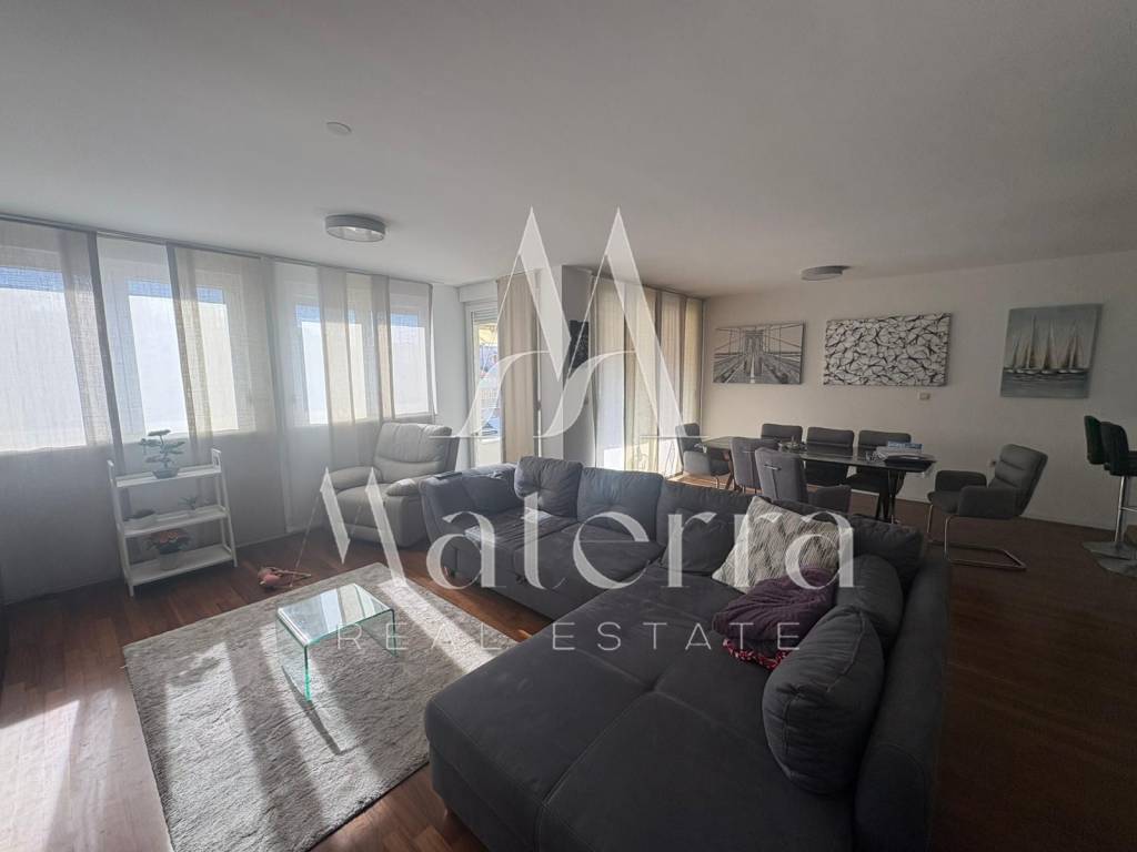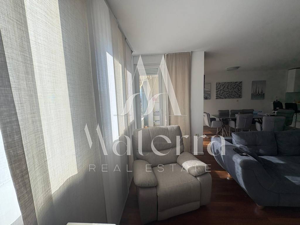 A spacious and luxuriously furnished three-bedroom apartment of 127 m² is for sale, located on the fourth floor of a modern residential building built in 2011, with an elevator and north–south orientation.