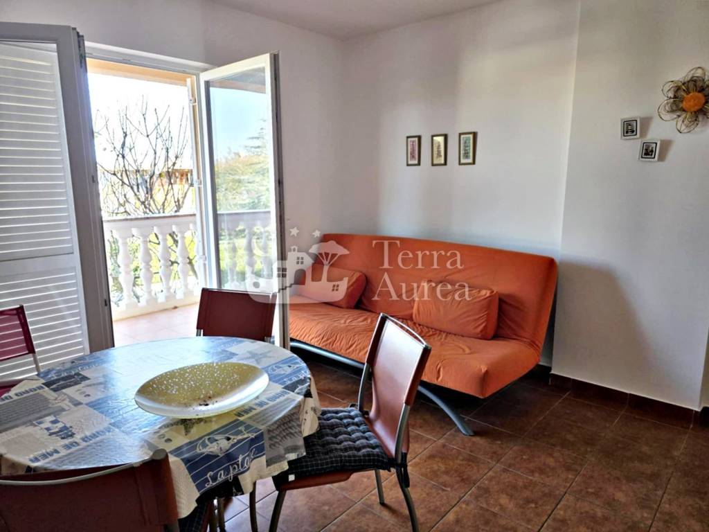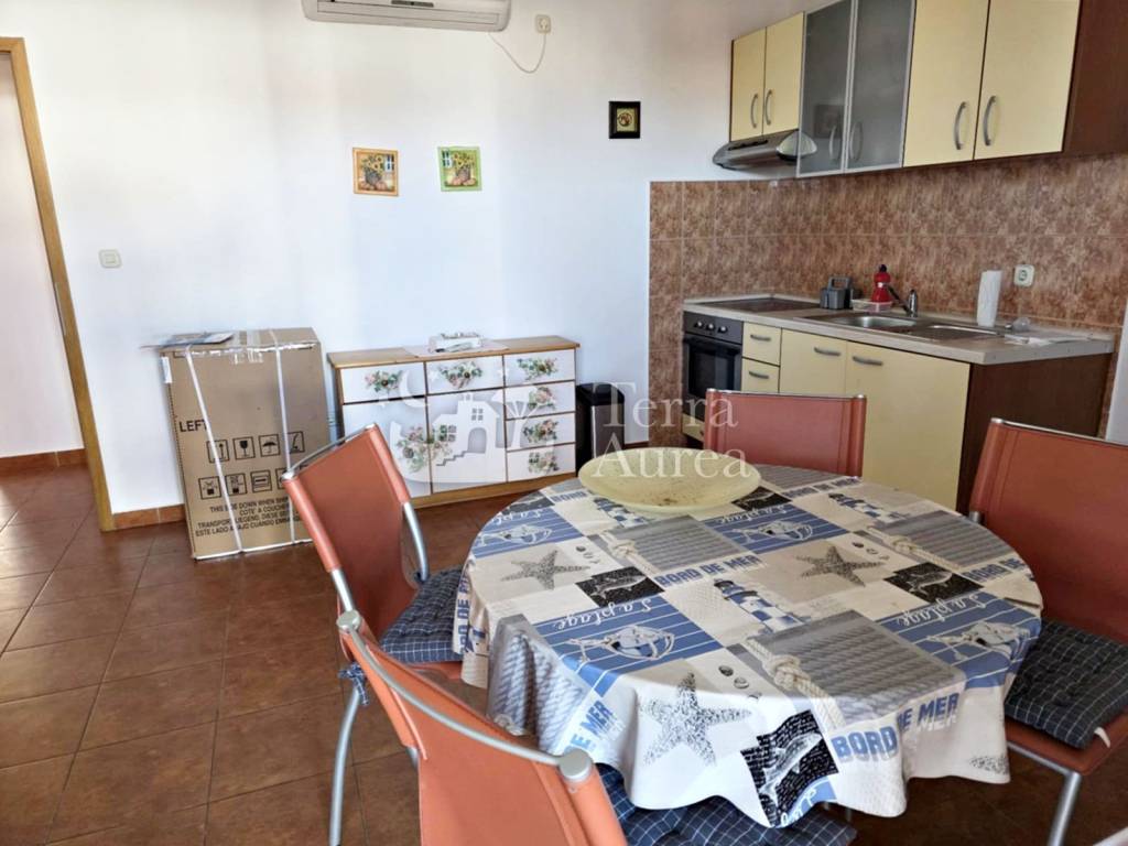 Internal stairs lead to the attic where there is a living room with a kitchen, a bedroom, a bathroom, a storage room and a terrace with a beautiful sea view.