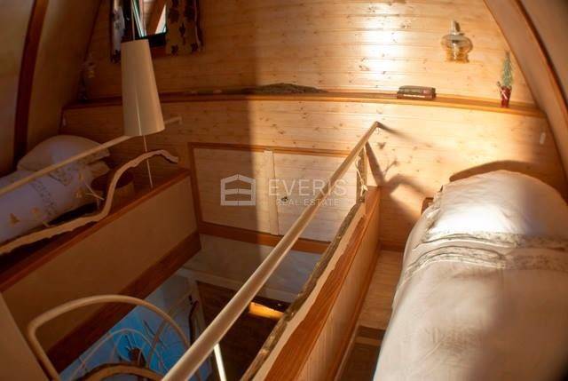 Ground floor (50 sqm): Kitchen with dining room and living room, bathroom, hallway and terrace. Attic (30 sqm): Two bedrooms, balcony with beautiful views.