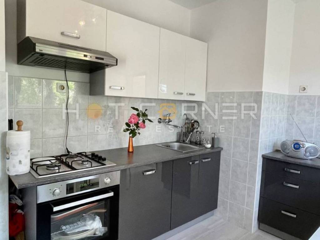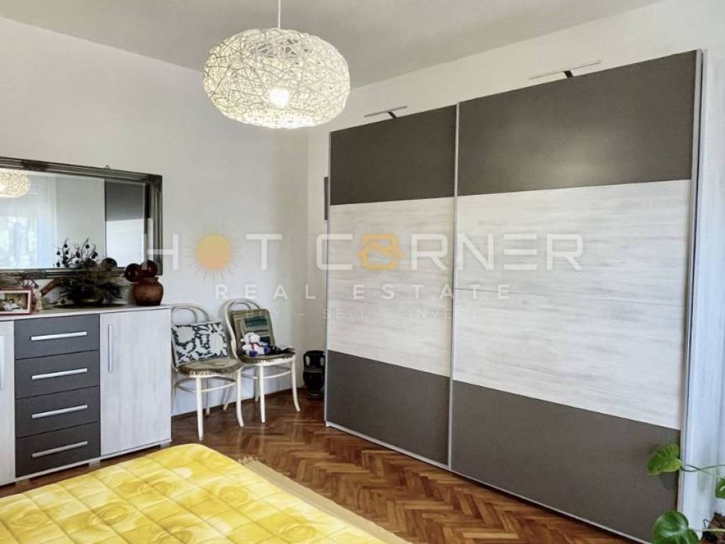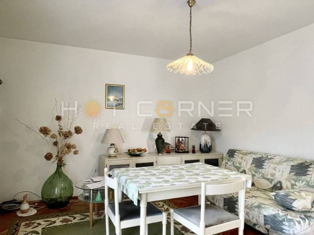 The apartment is characterized by an excellent central position, the orientation of the building - southeast, and a beautiful garden with olive trees. There is a free city parking lot in front of the building.