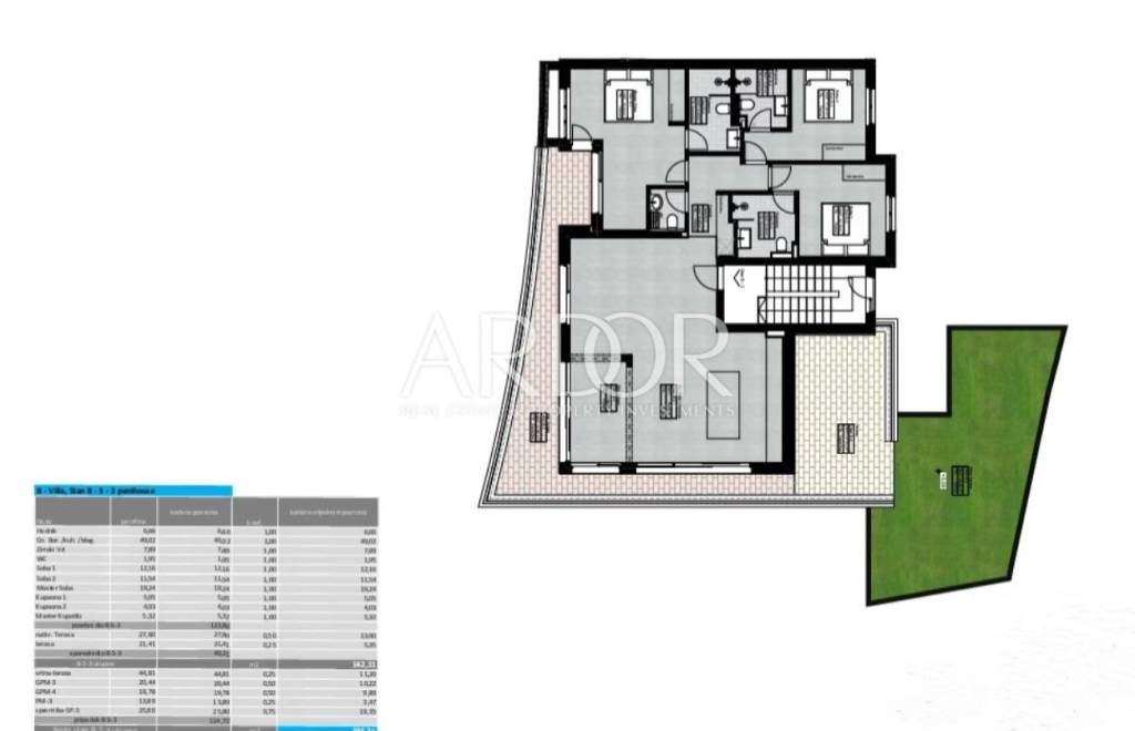 It is located on the second, top floor and consists of an open-concept living room, dining room and kitchen, three bedrooms, three bathrooms and a guest toilet. The open-concept layout seamlessly connects the indoor and outdoor spaces, perfect for relaxation.