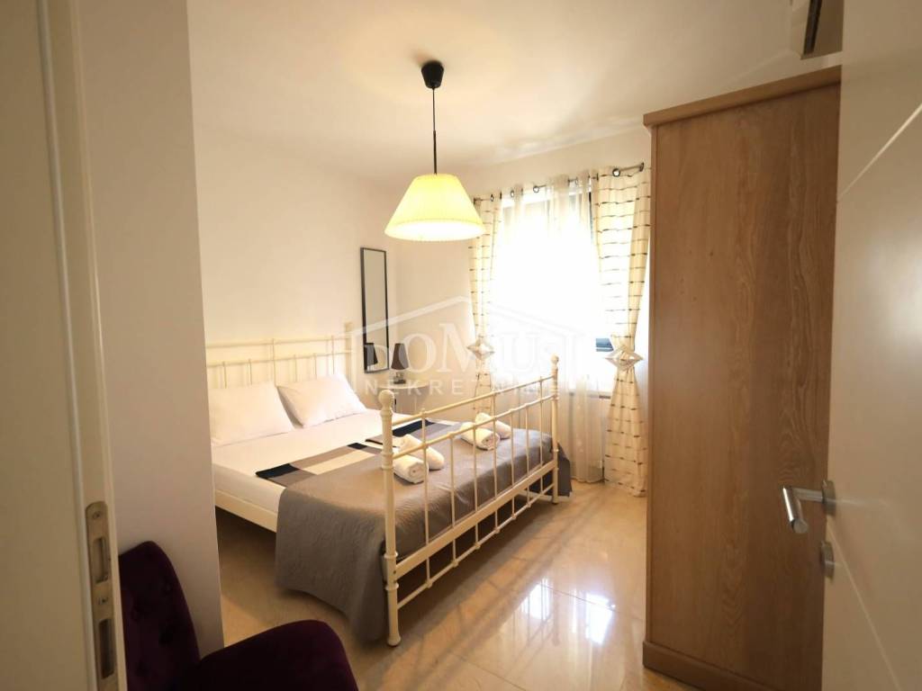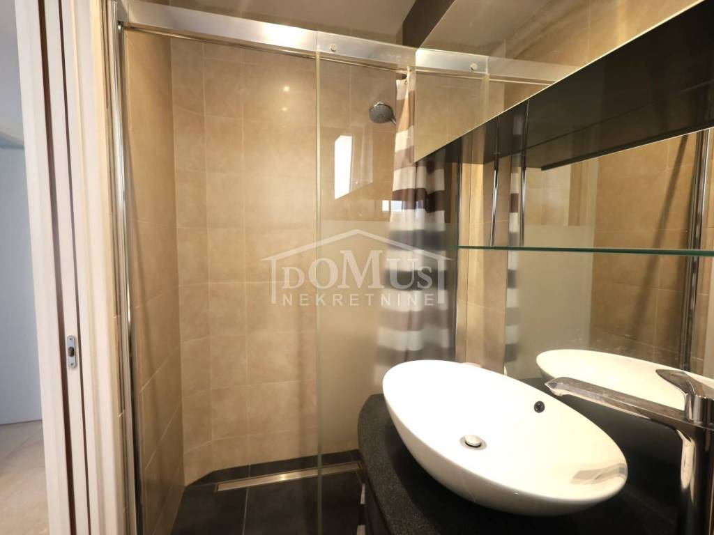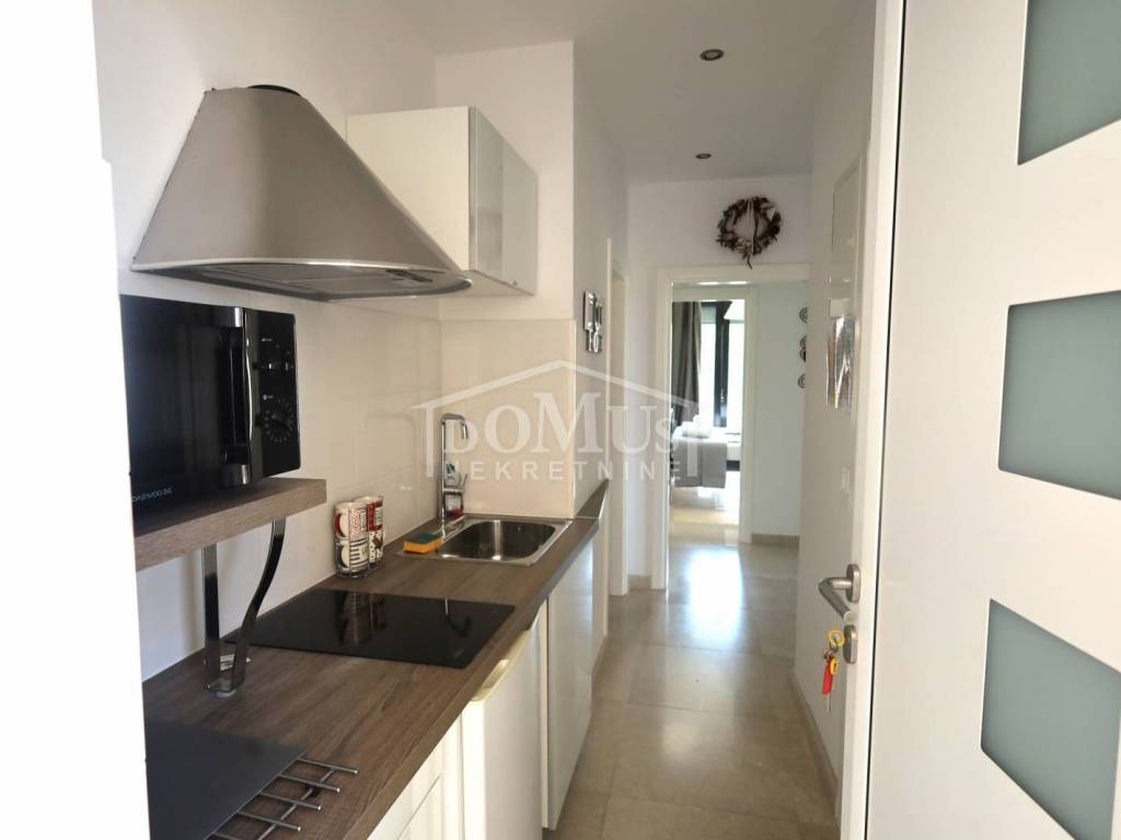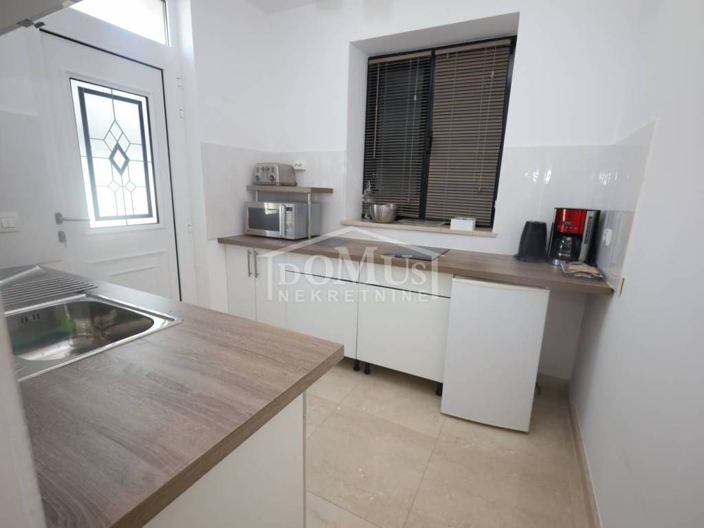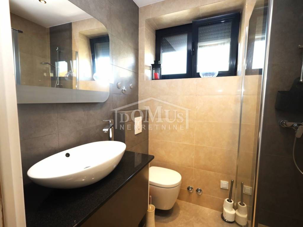 Vodice, excellent location, only 200 m from the city center, there is an apartment on the 1st floor of a building, marked S4, with a total area of 105.39 m2, which is fully equipped with furniture and inventory. The apartment consists of: entrance hall, mini kitchen I, bathroom I, dining room + living room, 1 terrace of approximately 27.oo m2 with access from three rooms, three bedrooms, two bathrooms, kitchen II, and another terrace II covered with a pergola of approximately 20.oo m2, with access from kitchen II. The apartment also has one outdoor parking space. The building is 550 m from the beach and 200 m from the city center.