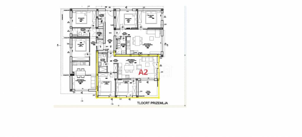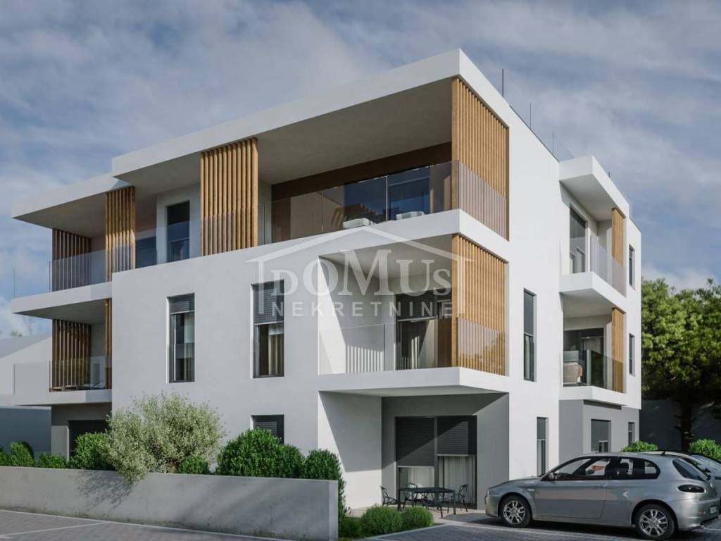 Residential unit "A2" is located on the ground floor of the building and has a usable area of 68.63 m2. The apartment consists of an entrance hall, bathroom, two bedrooms and a kitchen with dining area and living room with access to a 9.38 m2 terrace. The apartment has garden of 30 m2 and one parking space. The building is located 800 m from the beach and 900 m from the city center and all important amenities. Another residential unit is also available in this building: