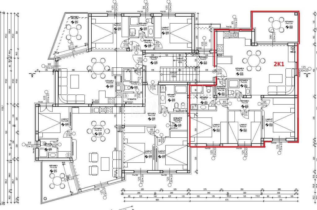 Residential unit 2K1 is located on the second floor of the building, oriented to the northeast, and has a usable area of 92.56 m². In the front part of the apartment, there is a spacious kitchen with a dining area and a living room with access to a terrace of 11.24 m², offering a sea view. The apartment also includes a bathroom, storage rooms, and a hallway leading to three bedrooms, one of which has its own bathroom. The apartment comes with a storage room in the basement and one parking space.