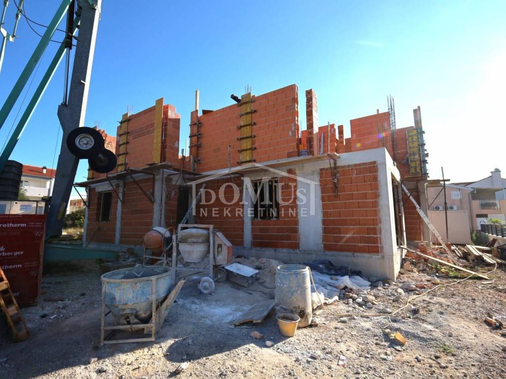 Vodice new residential building with a total of 4 residential units. Apartment "S4" is located on the 1st floor, it has a living area of 64,98 m² and consists of an entrance hall, bathroom, two bedrooms, kitchen with dining area and living room with access to the terrace. The apartment has a modern design and functional layout, equipped with air conditioning in the living room and bedrooms, electric underfloor heating in the bathroom and living room, security entrance doors, PVC joinery, electric roller shutters, and modern bathroom equipment. The apartment has one outdoor parking space. The apartment is located 1400 m from the sea as well as the city center and all important amenities. The expected move-in date is summer 2026. Possibility of purchasing an additional parking space for €6,000.
