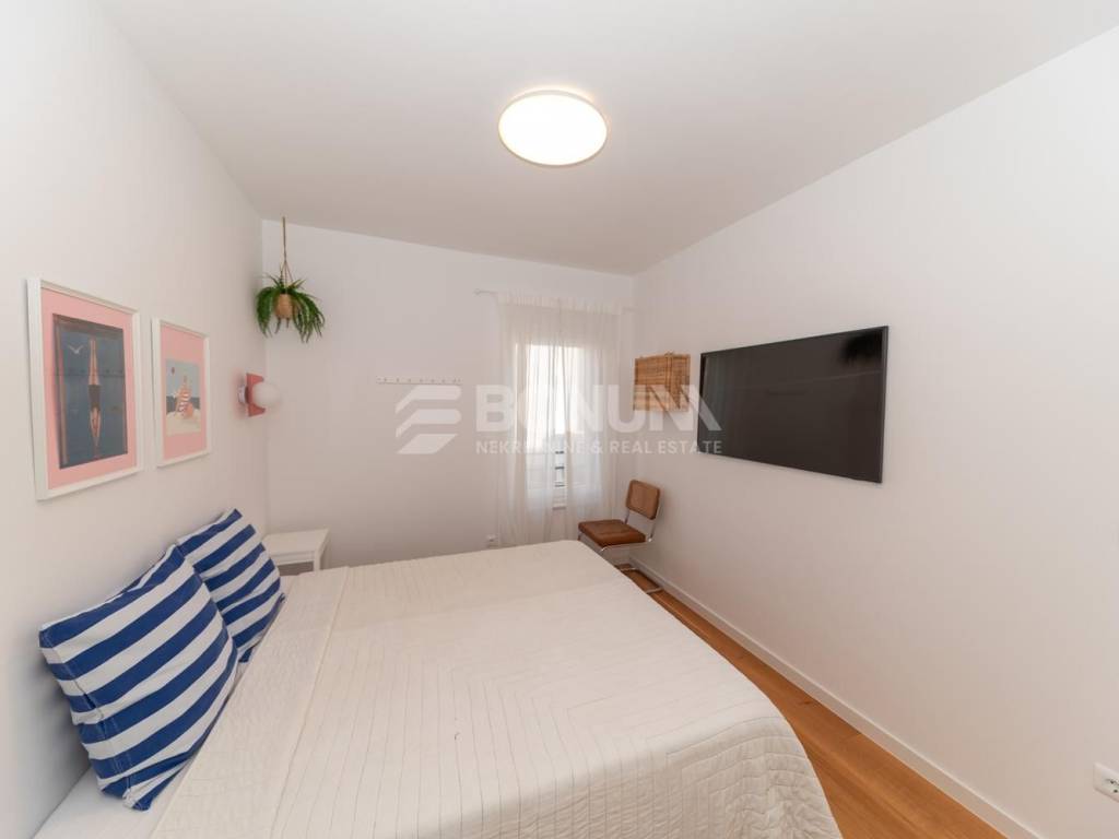 The apartment is sold fully furnished and equipped, neat and ready to move in. Heating and cooling are provided by an air-conditioning unit in the living room, while the bathroom has underfloor heating, ensuring year-round comfort.