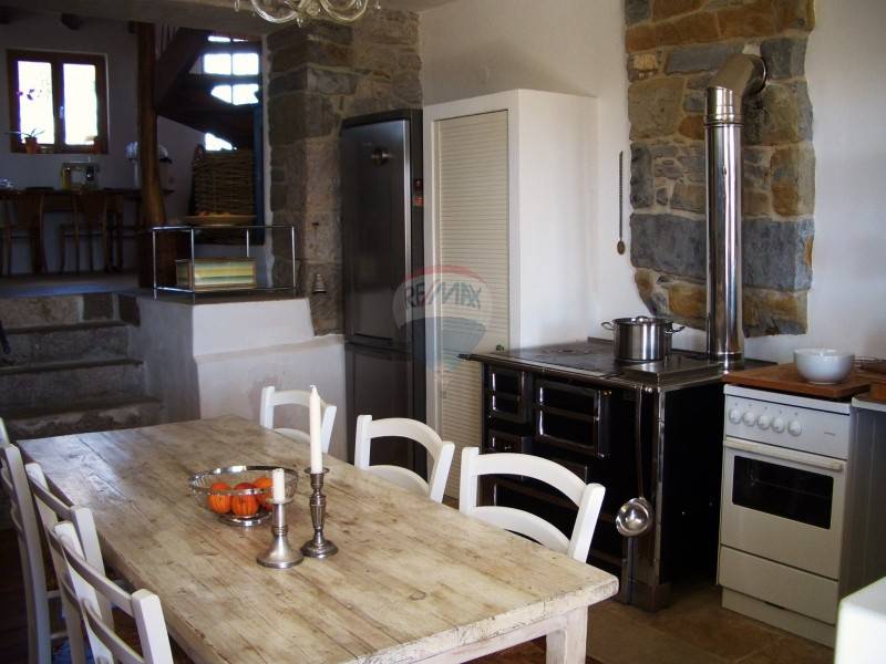 Velika kamena vila nalazi se u malenom istarskom selu, te ima svega nekoliko susjeda. Lokacija je idilična i u prirodi, a od Rijeke ili mora udaljena je svega pola sata. Kompletno je renovirana i luksuzno uređena, ali se nije diralo u staru strukturu, tako da su sve prostorije vrlo prostrane.ispred se nalazi velika terasa, prostor za blagovanje i odmor, te bazen i stolni tenis. Uređenje je u kamenu i drvu, stilski ujednačeno, u velikom dnevnom boravku uređen je kamin. Kuhinja i blagovaonica su odvojene, a kući pripada i 3 velike spavaće sobe.Vrlo lijepa i rijetka nekretnina.