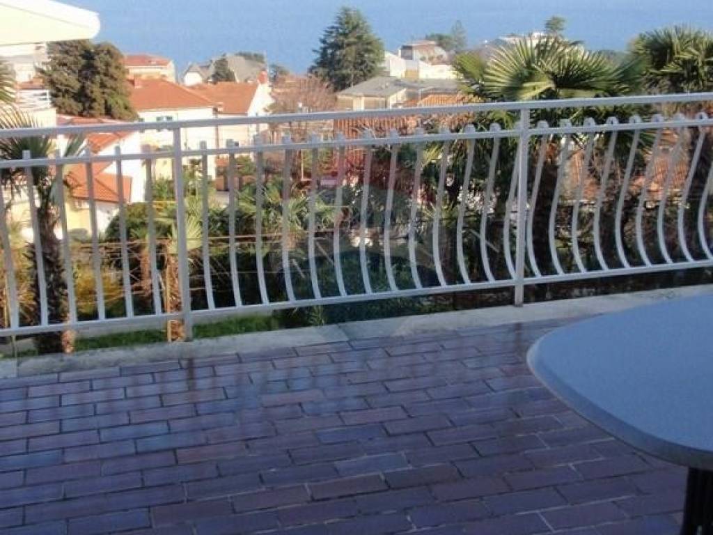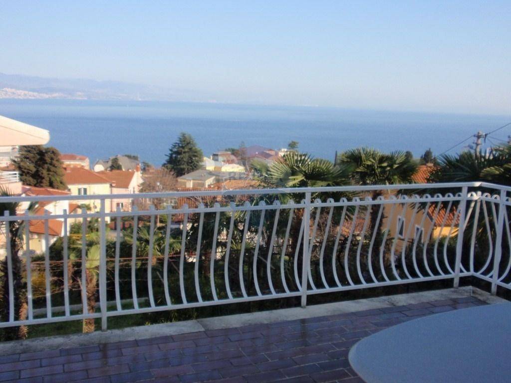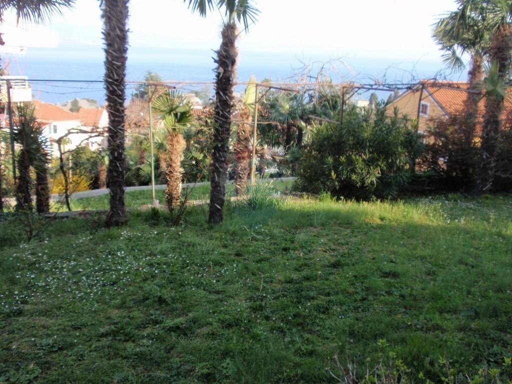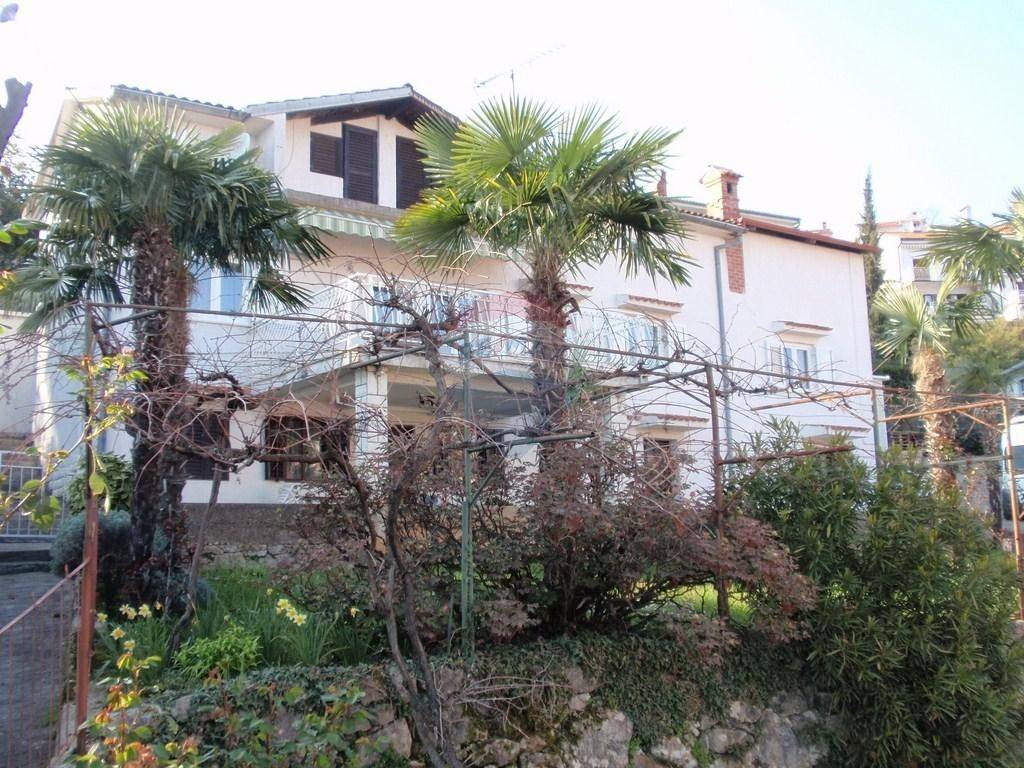 Kuća se nalazi nedaleko od centra Opatije. Stambeni dio se sastoji od glavnog stana na katu (3s+db). Na veliku terasu se izlazi iz dnevnog boravka. Sa nje se pruža pogled na more. U prizemlju je jedan apartman sa odvojenom spavaćom sobom. Postoji još jedna prostorija veličine 40-tak kvadrata, te odvojena ostava iste veličine. Odvojeno je kotlovnica sa spremnikom za lož ulje. Iznad glavnog stana je visoko (neuređeno) potkrovlje, koje se uz neveliku investiciju po potrebi može pretvoriti u stambeni prostor. Odvojeno od kuće je velika garaža veličine 80 m2 koja se trenutno koristi kao radionica. Na dvorištu je još jedno natkriveno parkirno mjesto a sveukupno se na parkingu može smjestiti i do 6 automobila. INVESTITORI / GRAĐEVINARI: PRILIKA!!! S obzirom na veličinu zemljišta, na ovoj lokaciji se može izgraditi dvije kuće ili višestambeni objekt!