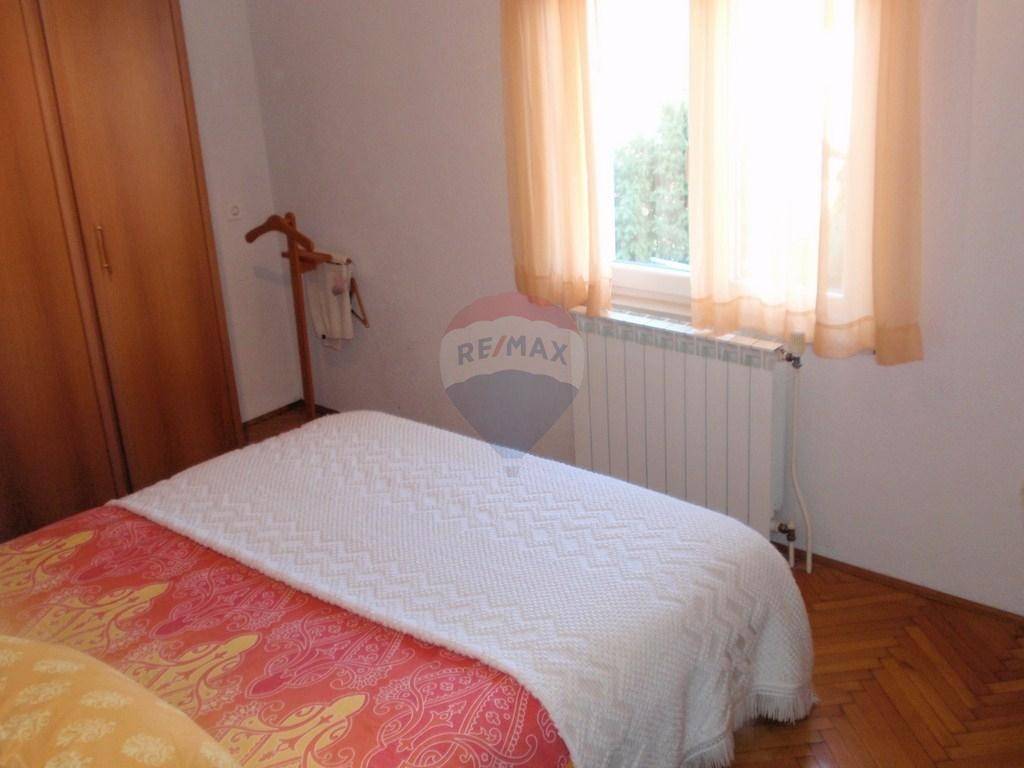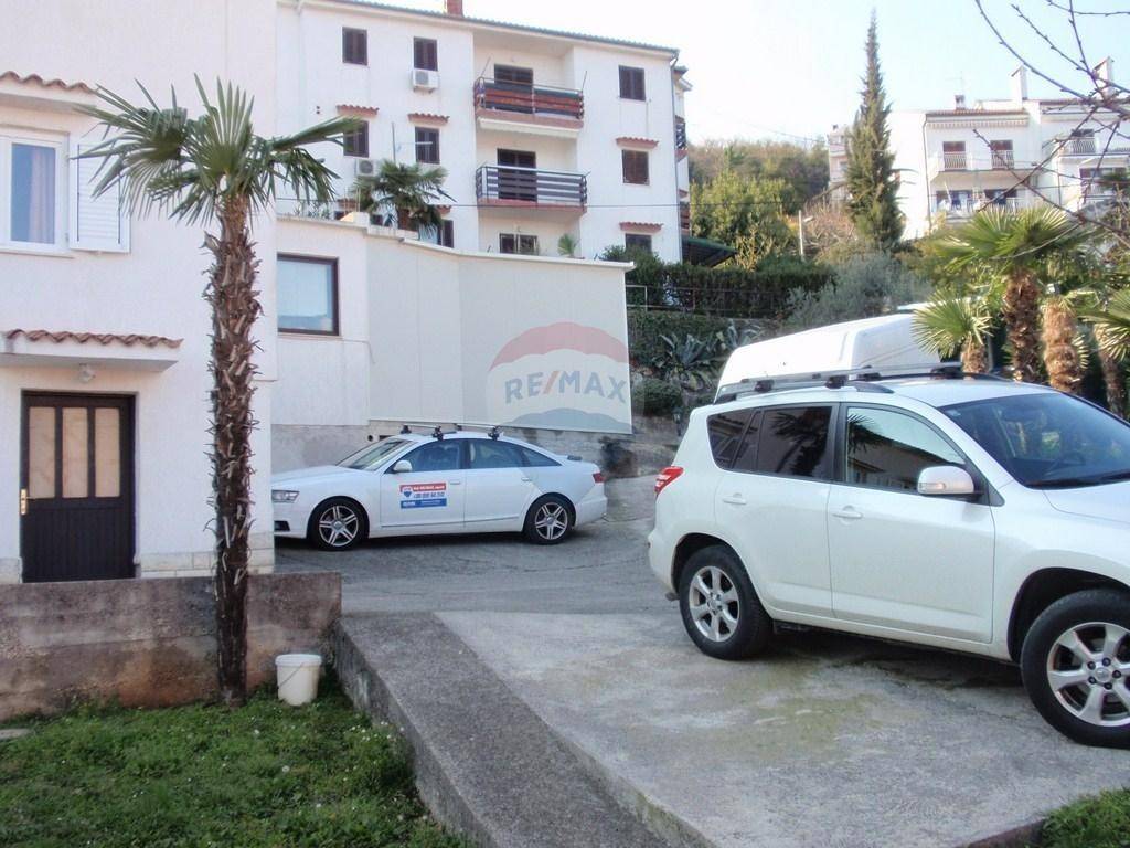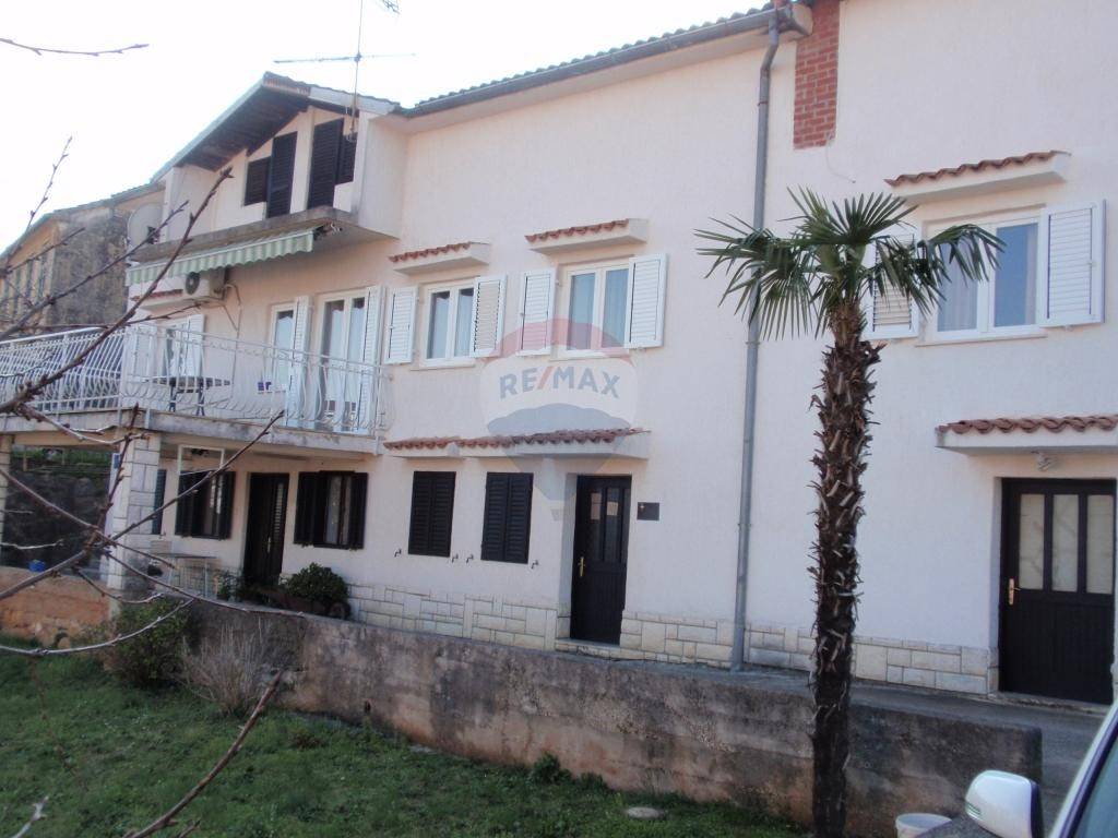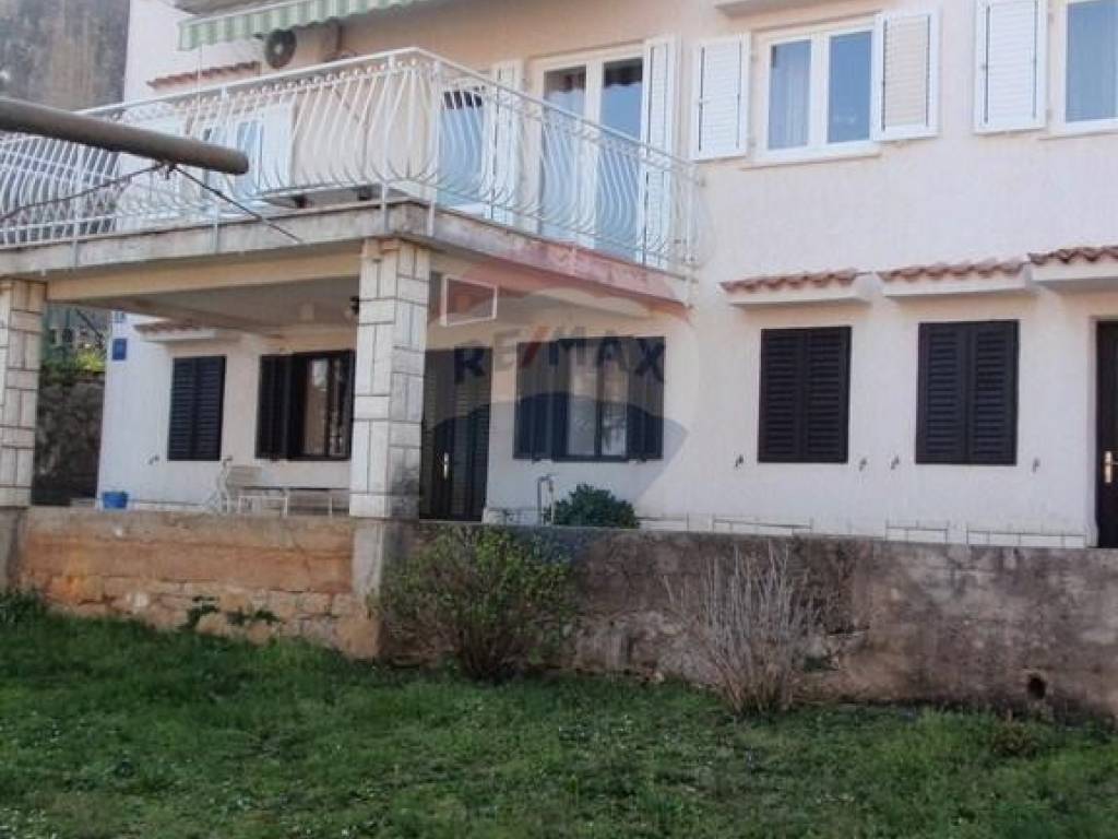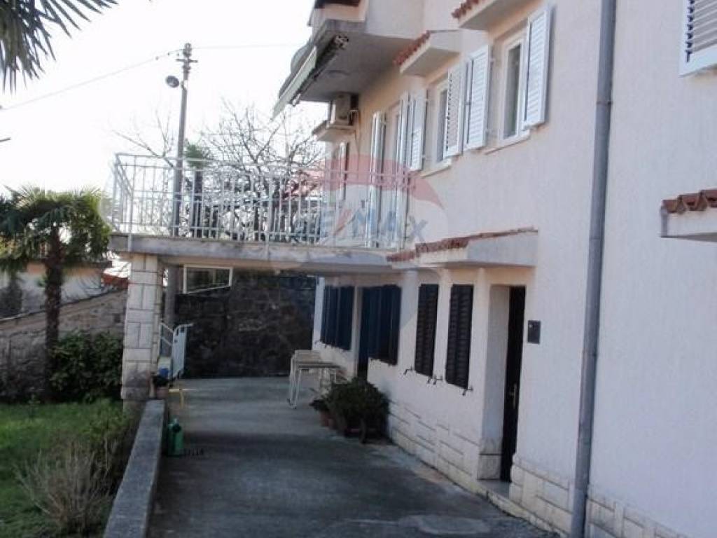 Kuća se nalazi nedaleko od centra Opatije. Stambeni dio se sastoji od glavnog stana na katu (3s+db). Na veliku terasu se izlazi iz dnevnog boravka. Sa nje se pruža pogled na more. U prizemlju je jedan apartman sa odvojenom spavaćom sobom. Postoji još jedna prostorija veličine 40-tak kvadrata, te odvojena ostava iste veličine. Odvojeno je kotlovnica sa spremnikom za lož ulje. Iznad glavnog stana je visoko (neuređeno) potkrovlje, koje se uz neveliku investiciju po potrebi može pretvoriti u stambeni prostor. Odvojeno od kuće je velika garaža veličine 80 m2 koja se trenutno koristi kao radionica. Na dvorištu je još jedno natkriveno parkirno mjesto a sveukupno se na parkingu može smjestiti i do 6 automobila. INVESTITORI / GRAĐEVINARI: PRILIKA!!! S obzirom na veličinu zemljišta, na ovoj lokaciji se može izgraditi dvije kuće ili višestambeni objekt!