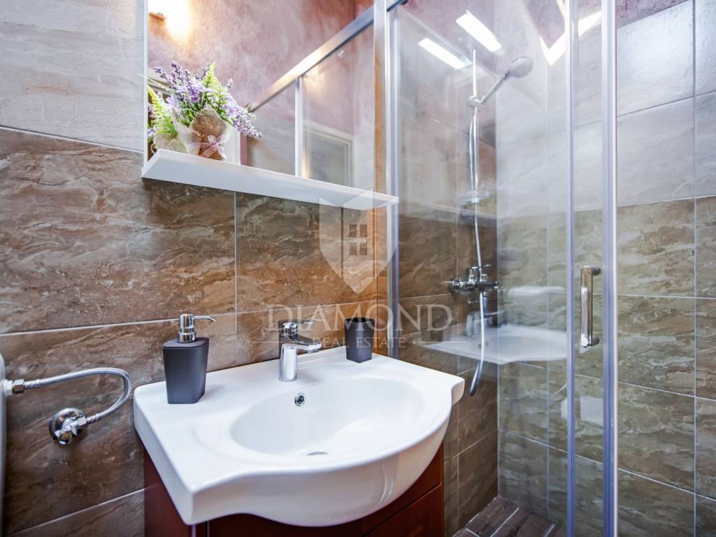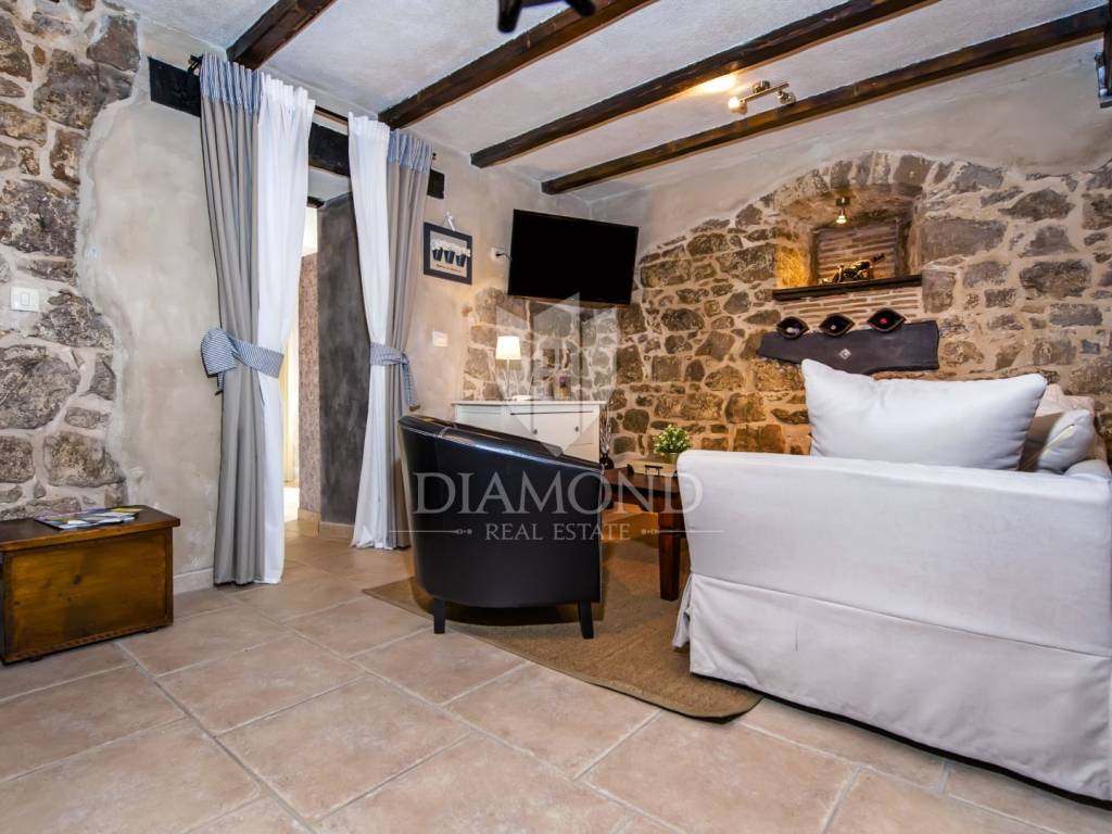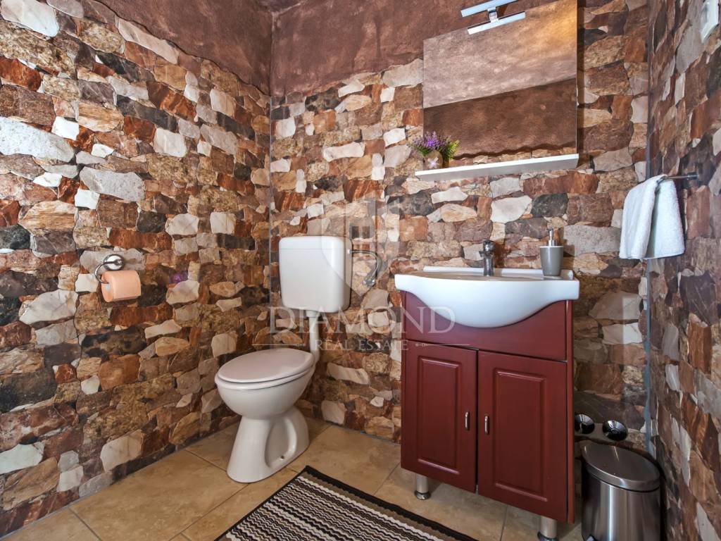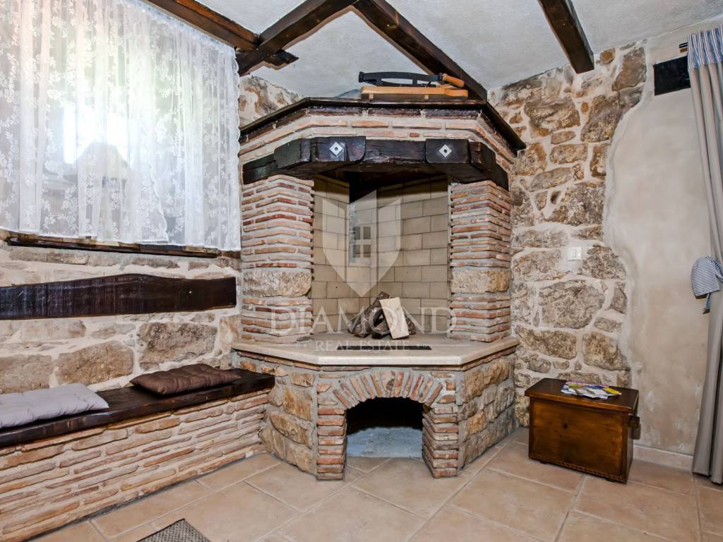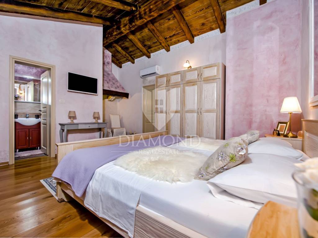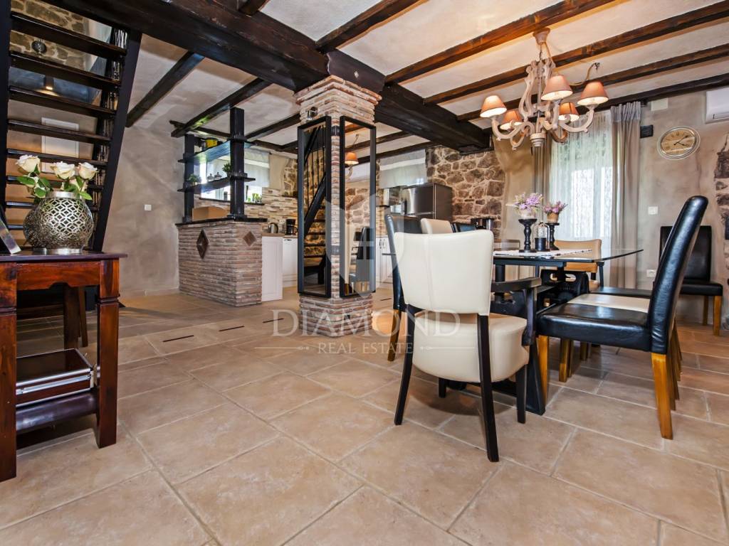 Kršan, surroundings, we are selling an autochthonous old villa which, with its design and a handful of contents, is breathtaking at first sight. The villa was built in 1926 and completely renovated in 2017. Both outside and inside, it is decorated with exceptional style and attention to detail that combines wood, stone and steel in a beautiful combination for a comfortable and functional life. The villa has a total area of 183 m2 of living space which extends to the ground floor and first floor. The ground floor consists of a comfortable living room, fully equipped kitchen and dining room. There is also a guest toilet and laundry. In the continuation of the ground floor, with a separate entrance, there is another bedroom with bathroom. Upstairs are three comfortable bedrooms, each with its own bathroom. The issue of heating and cooling is solved by a beautiful fireplace located in the living room, and air conditioners that are installed in all bedrooms. The interior design in all rooms perfectly complements the indigenous spirit of this beautiful property and creates the ideal atmosphere for a perfect vacation or luxurious family life. The garden is 2825 m2, fenced and has two accesses - one to the open parking for two cars and the other, covered parking with an automatic gate for two more cars. In addition to a handful of various facilities such as a beautiful summer kitchen with a bread oven and barbecue, two swimming pools - one larger than 54 m2 and one smaller, children's 9 m2, tennis court with auxiliary facility and beautiful terraces with beautiful views, concept the garden offers both privacy and peace. Also, the garden is beautifully landscaped and maintained with planted Mediterranean plants and an orchard with various fruit trees. A house that certainly stands out in the offer and has a well-established tourist rental business during the season, which the new owner has the opportunity to take over and continue. The location is well connected with the paved access road, 4 km away to the first shop, bakery, cafes, restaurants, schools, kindergartens and clinics, and 3 km to the medieval town of Pićan.
